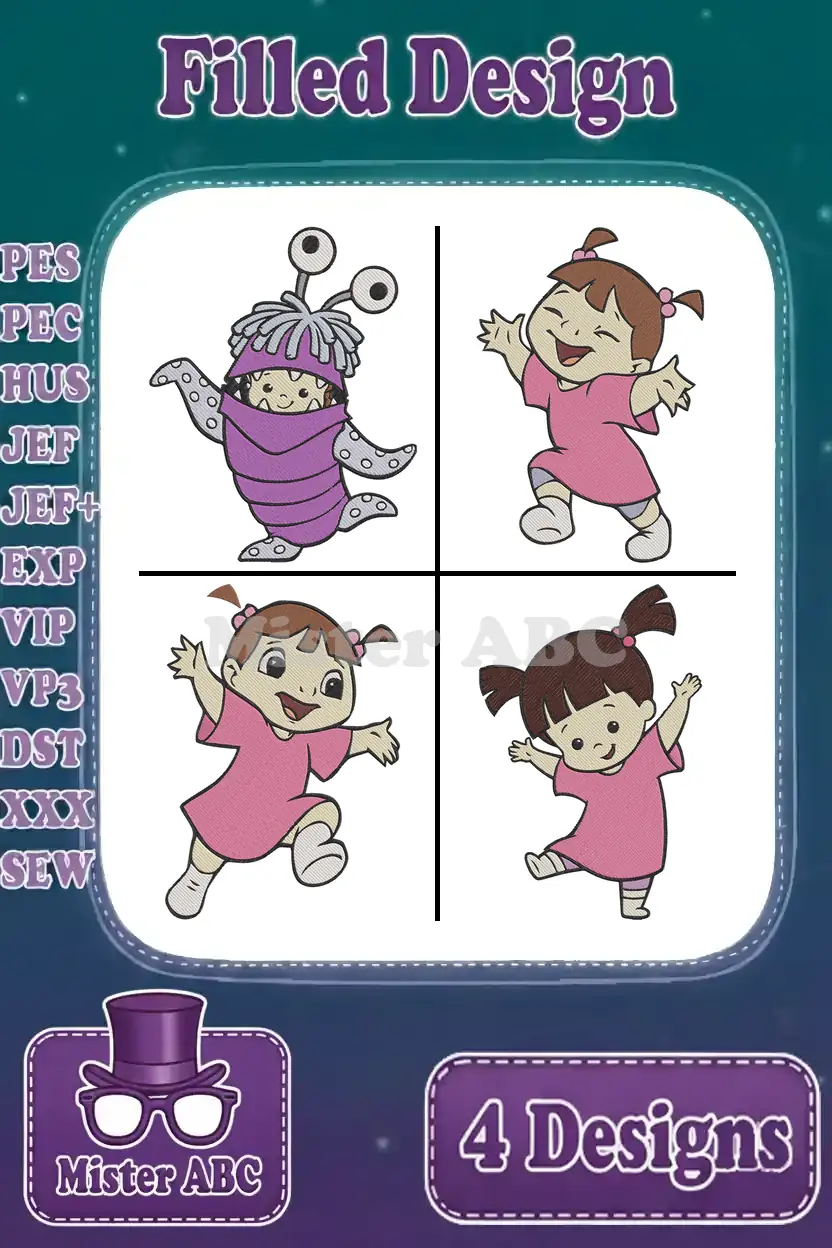 Monsters Inc – Boo Mary Gibbs Human Child – Cute And Playful Poses – Pixar Character Collection – Filled Embroidery Design – Instant Download