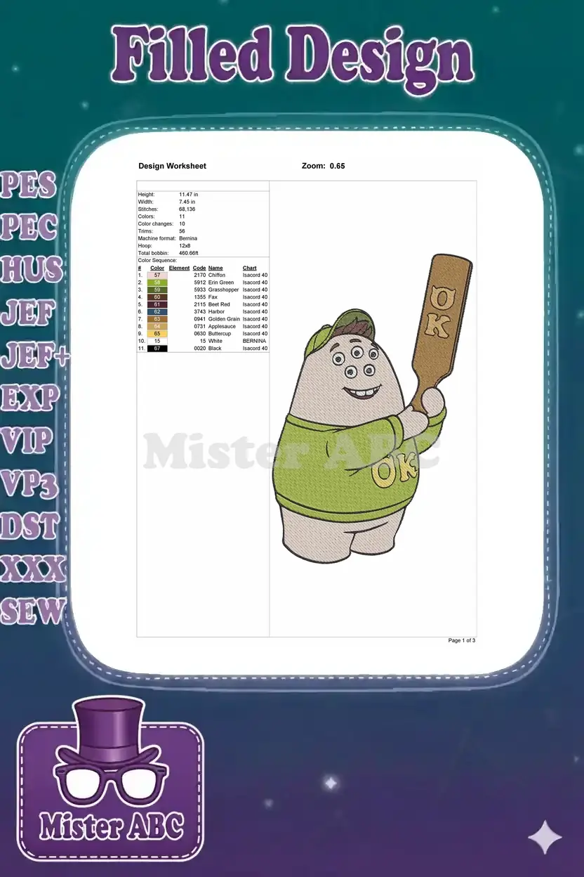Monsters University Squishy with OK Paddle Machine Embroidery Designs