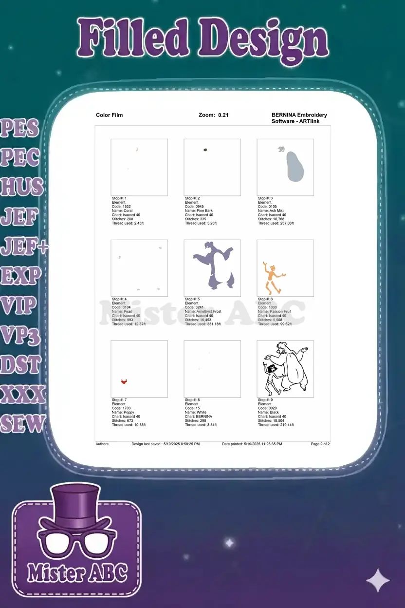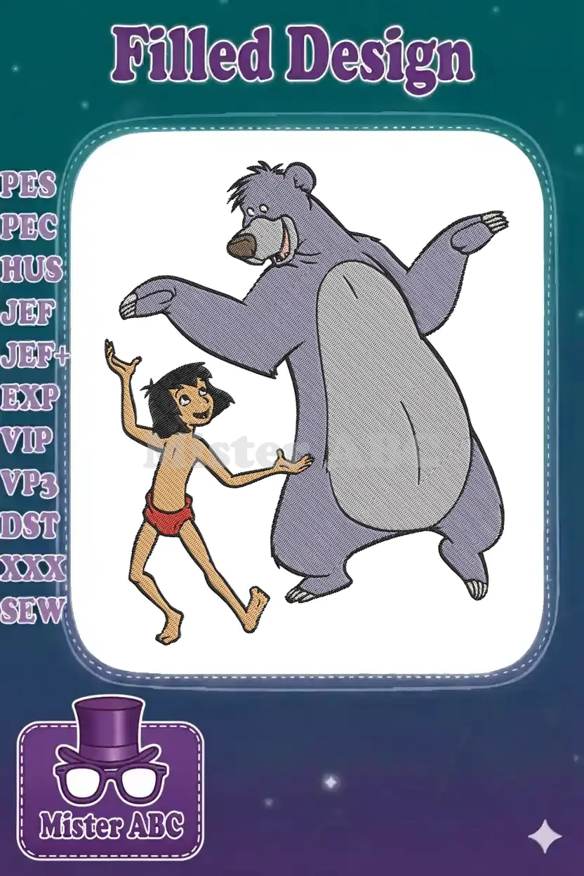 Mowgli and Baloo Dancing Jungle Book Character Embroidery Designs
