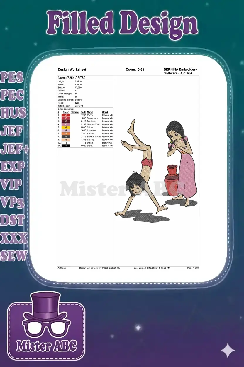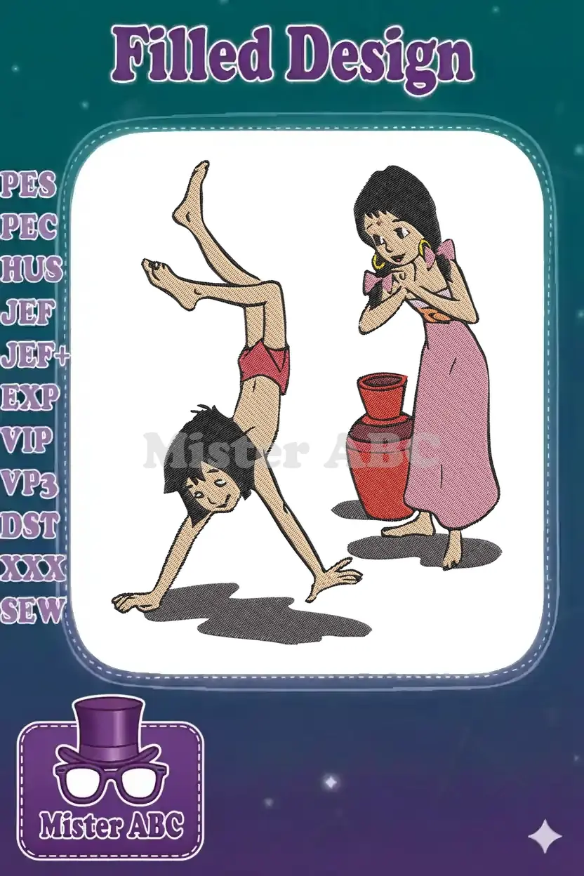 Mowgli Handstand Shanti Smiling Jungle Book Embroidery Designs