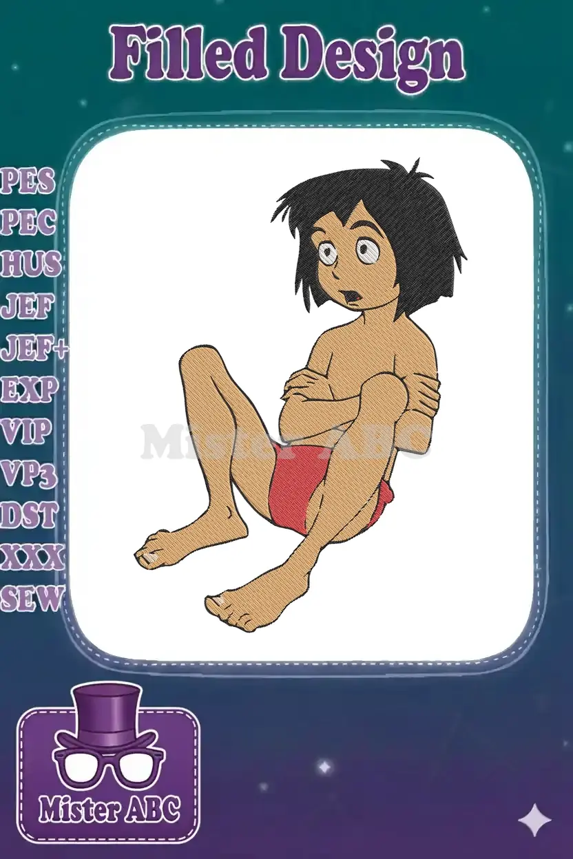 Mowgli The Jungle Boy Surprised Face Embroidery Designs