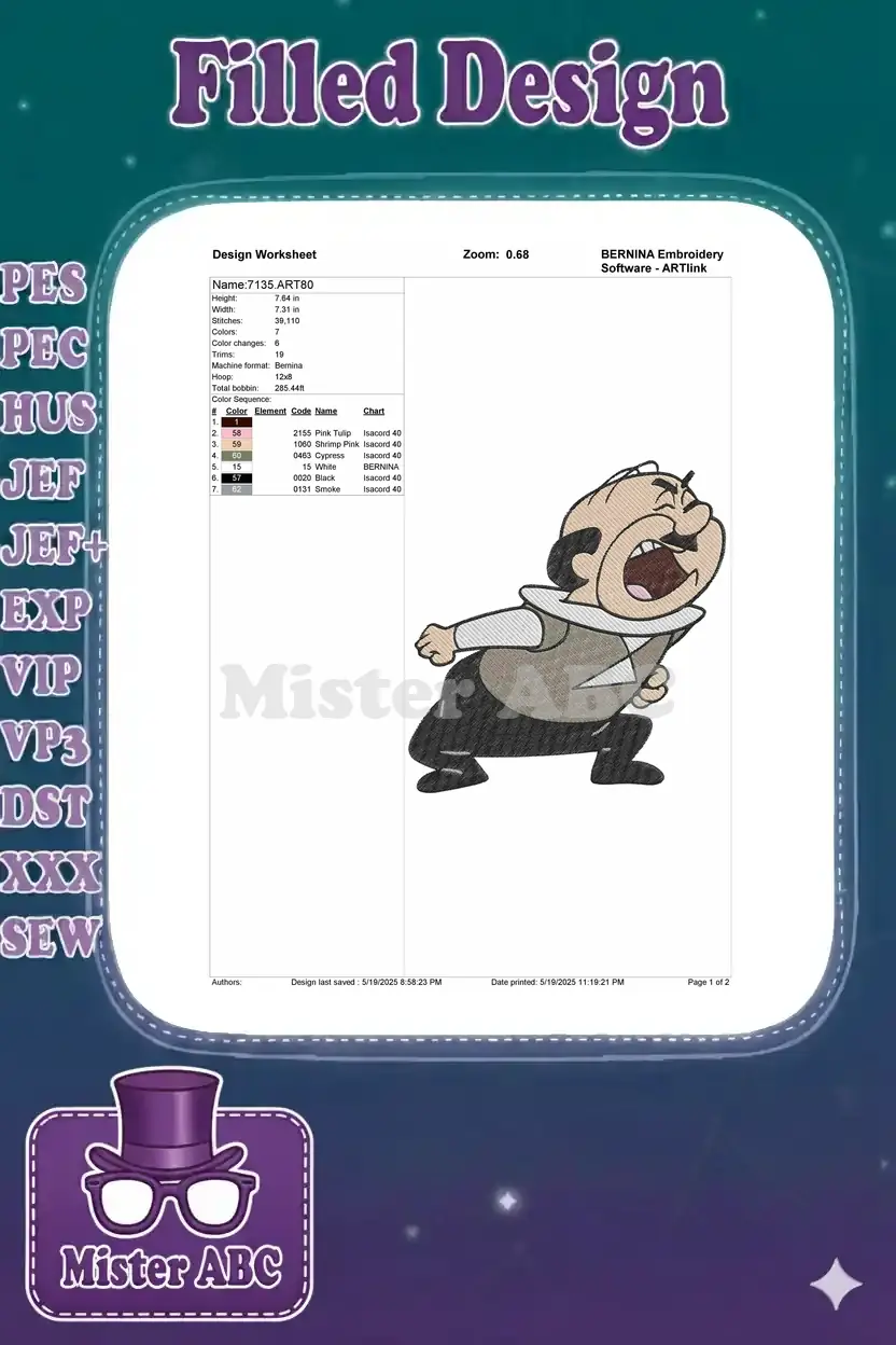 Mr Spacely Yelling Cartoon Embroidery Designs for Classic Jetsons Fans