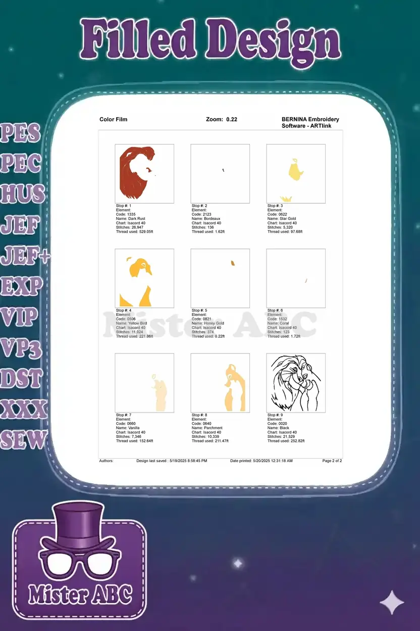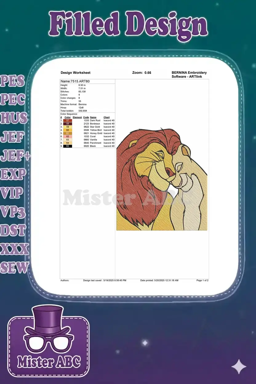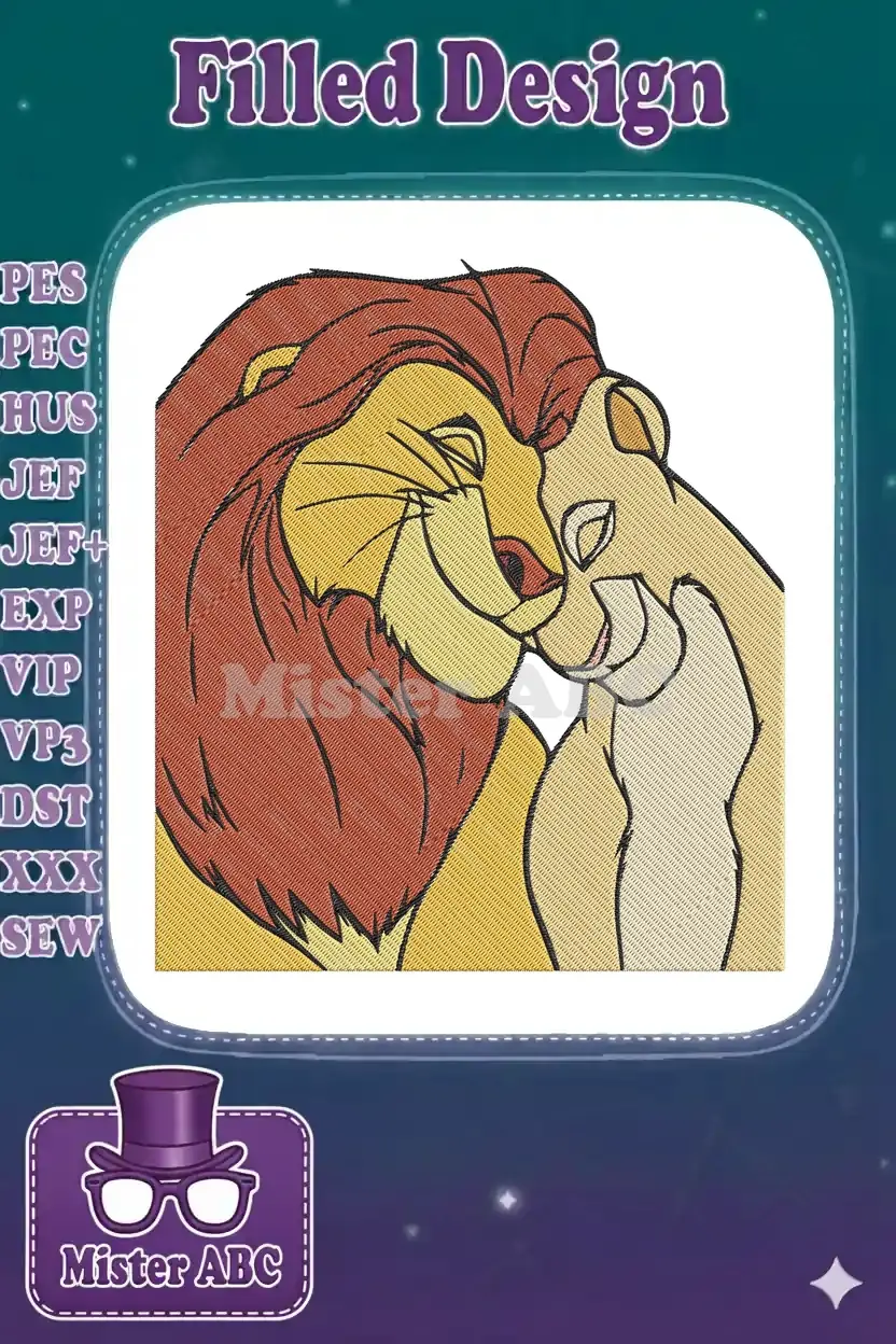 Mufasa and Sarabi affectionate lion king couple embroidery designs