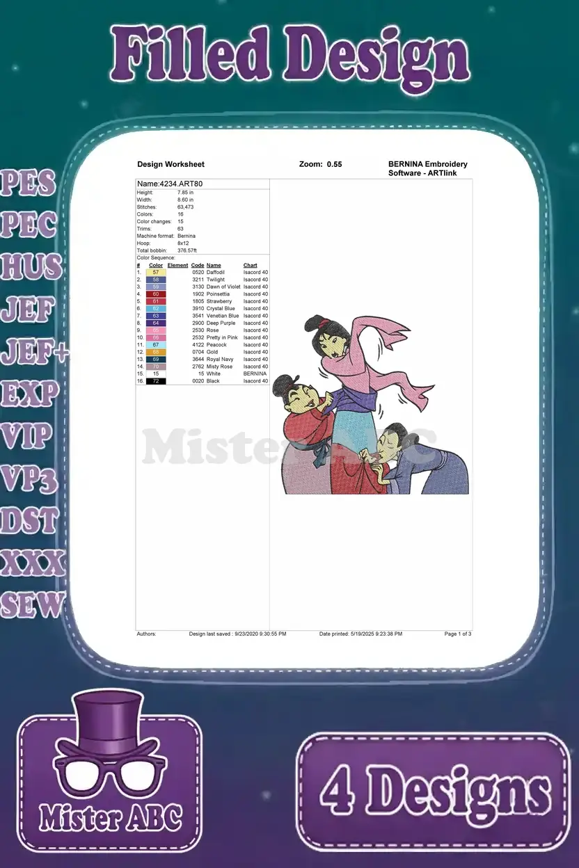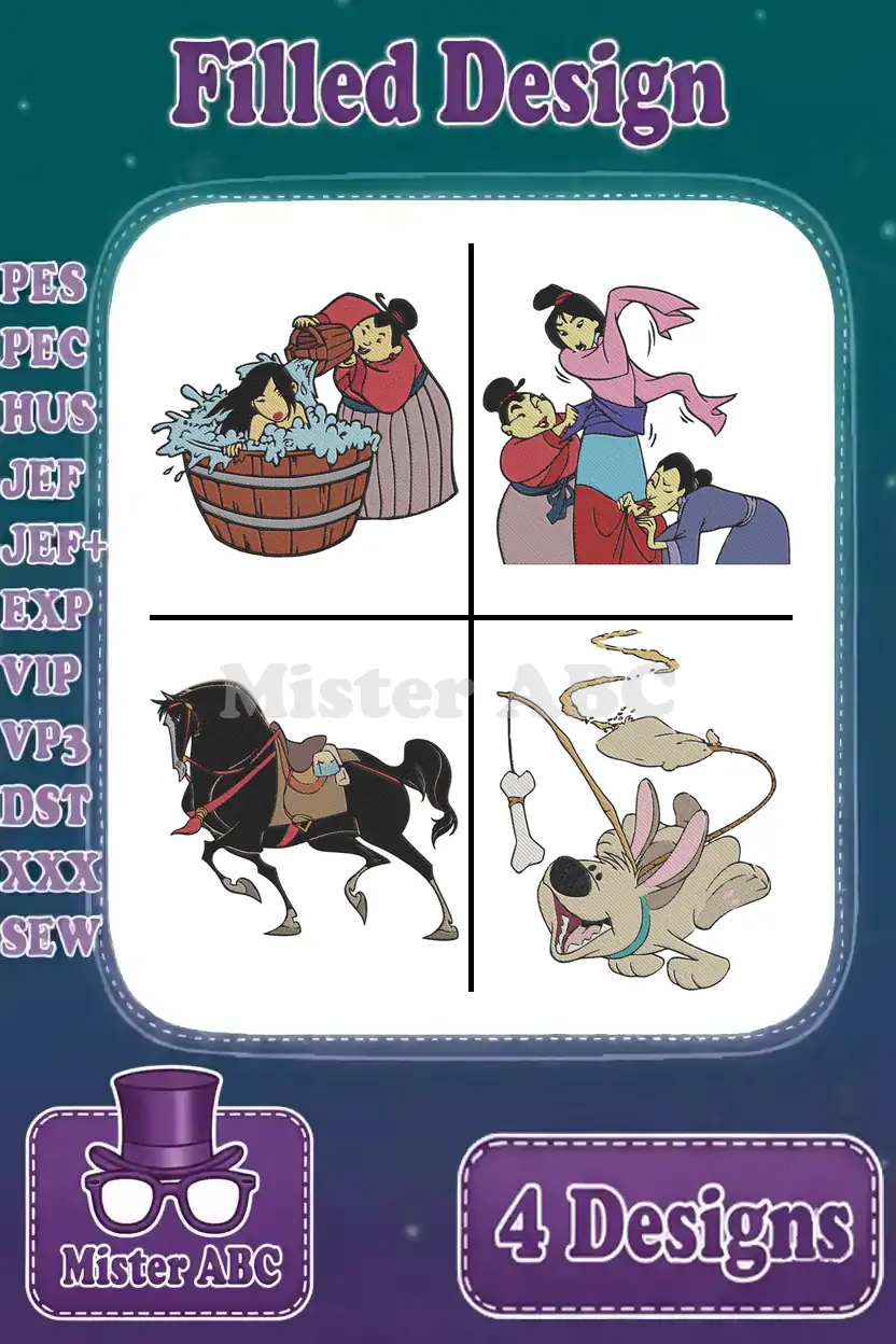 Mulan Bathing Grandmother Fa Parents Fa Zhou Fa Li Khan Horse Little Brother Dog – Filled Embroidery Design