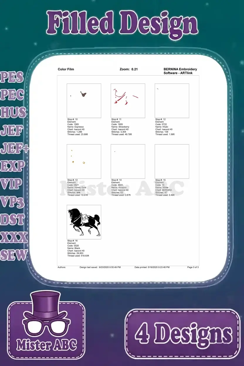 | Stitches | Colors | Thread Changes |