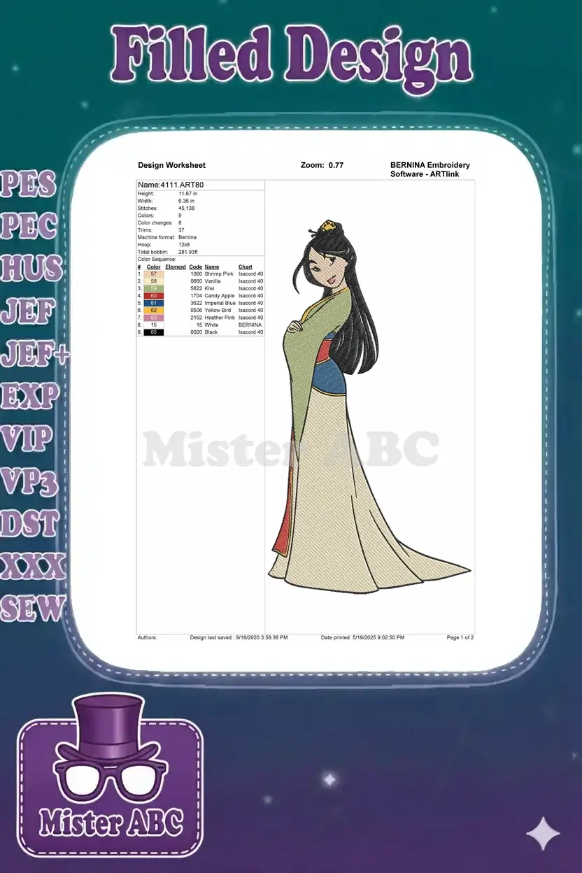 Mulan Disney Princess embroidery designs traditional Chinese outfit
