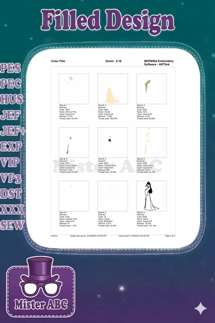 | Stitches | Colors | Thread Changes |