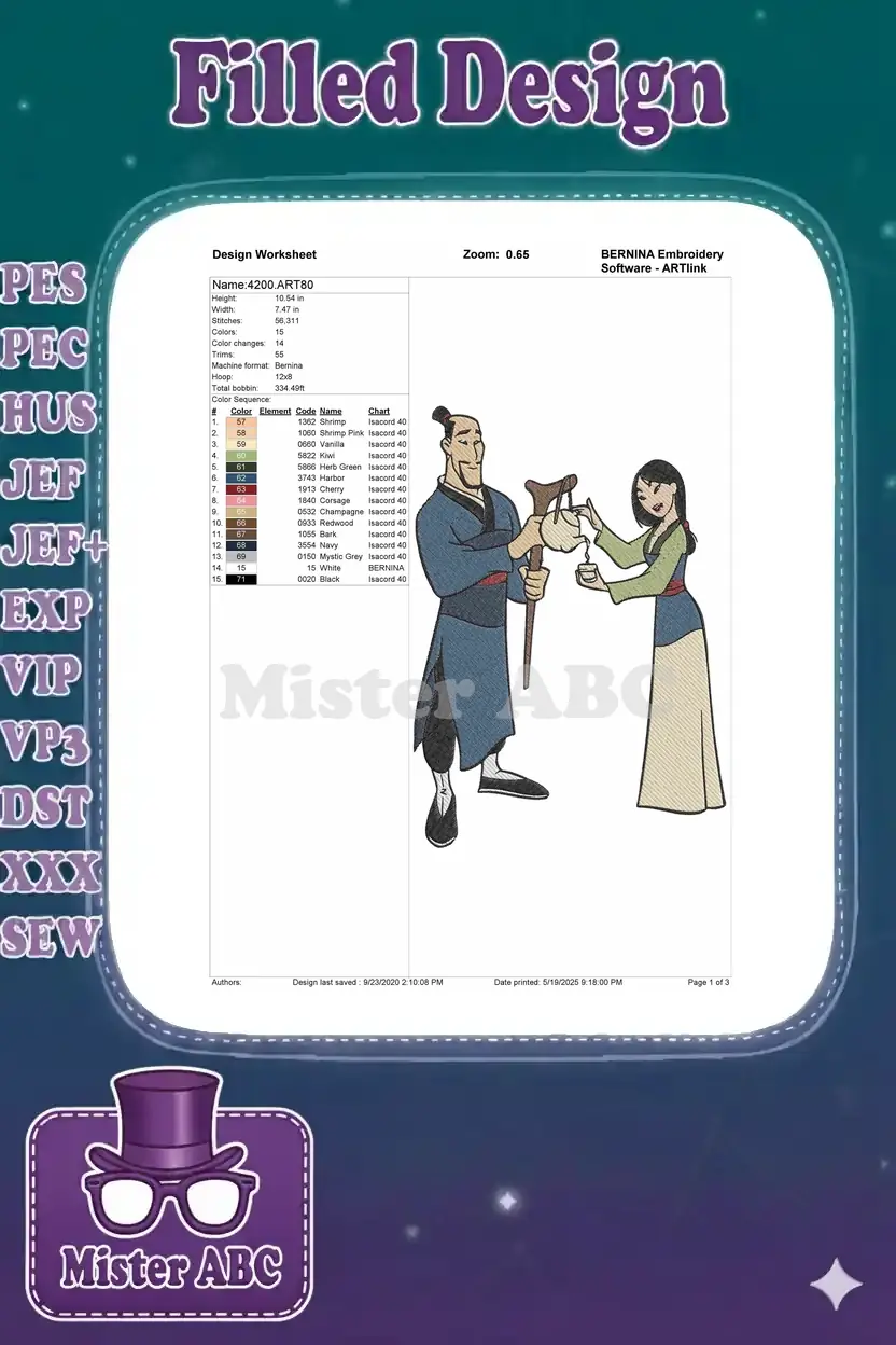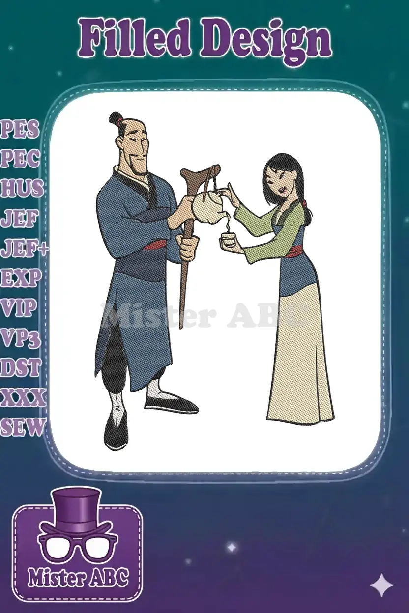 Mulan and Fa Zhou Tea Ceremony Father Daughter Embroidery Designs - Instant Download Mulan and Fa Zhou Tea Ceremony Father Daughter Embroidery Designs – Instant Download