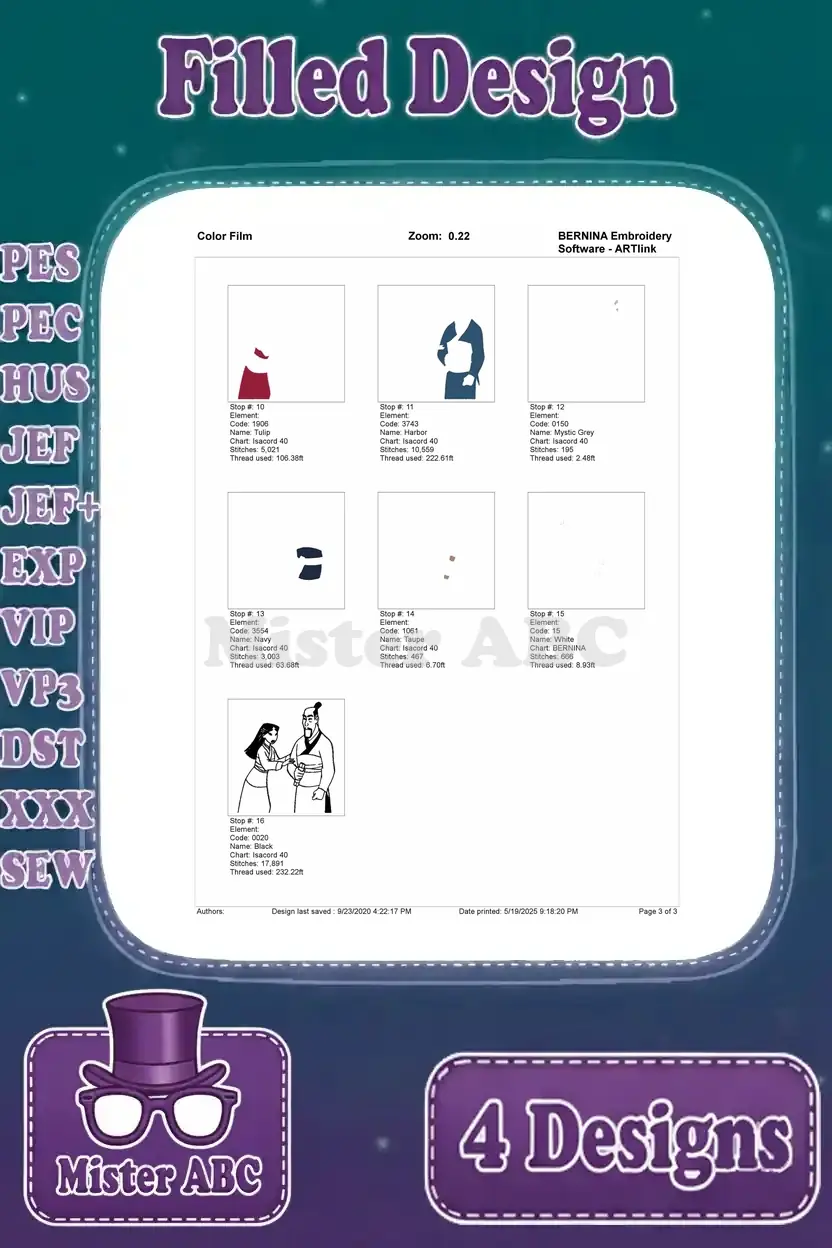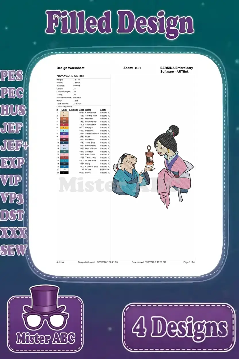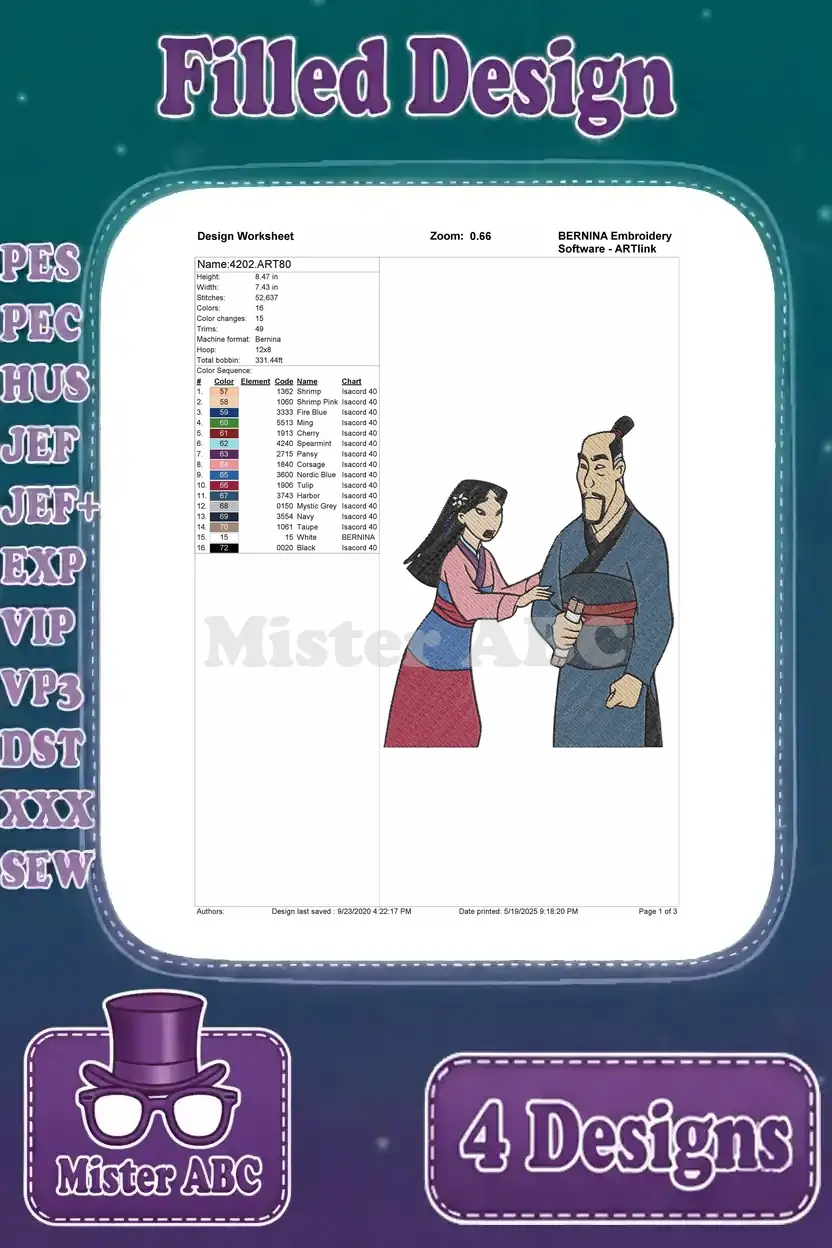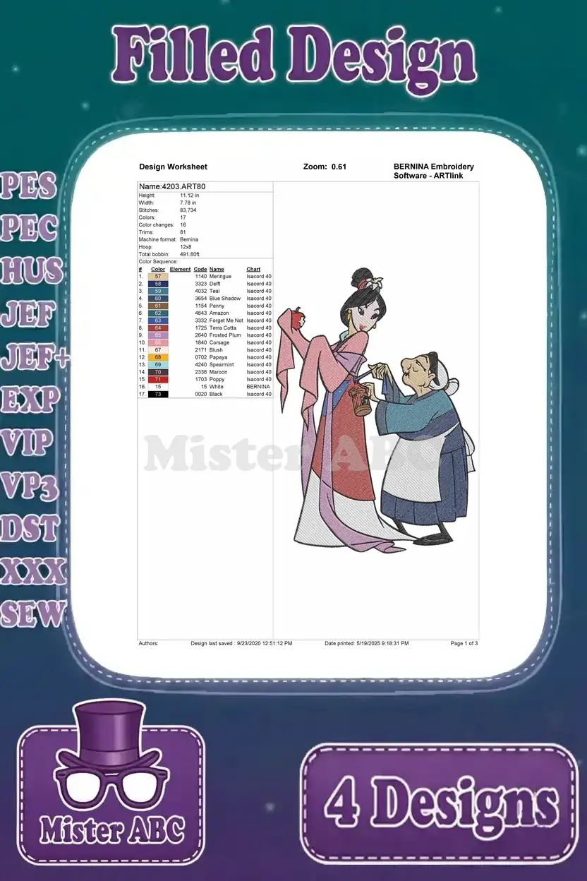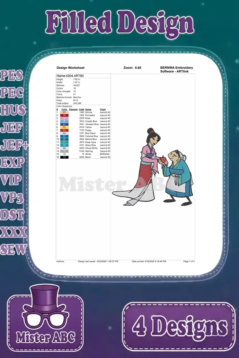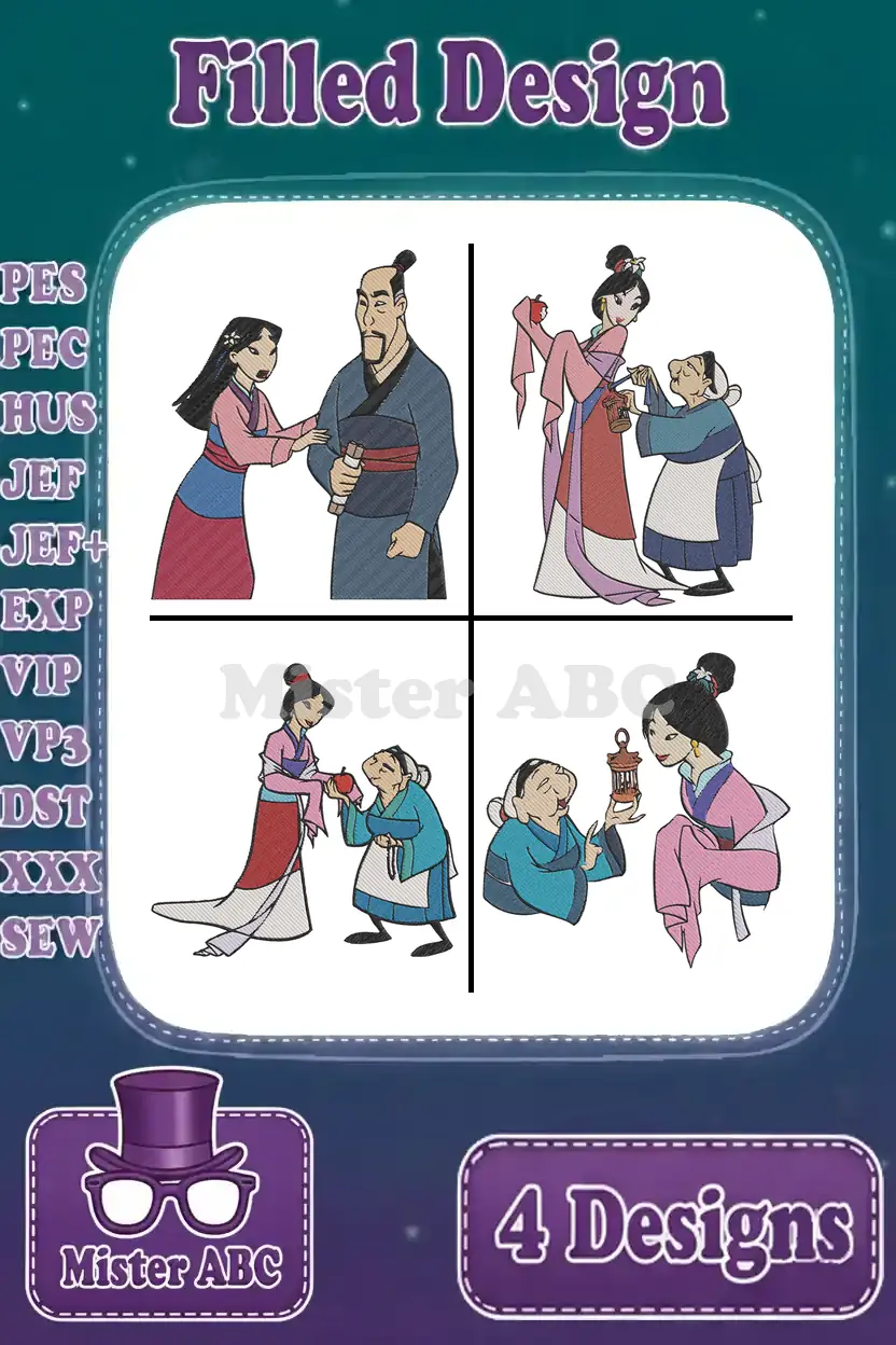 Mulan With Father Fa Zhou Matchmaker Interaction Grandmother Fa And Cri Kee – Filled Embroidery Design