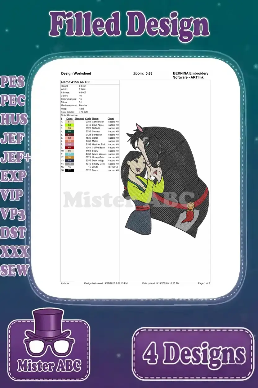 Mulan And Shang Embrace Mulan Bathing In Hanfu With Basket And Fishing – Filled Embroidery Design