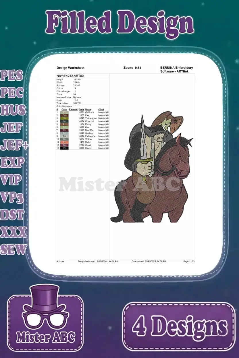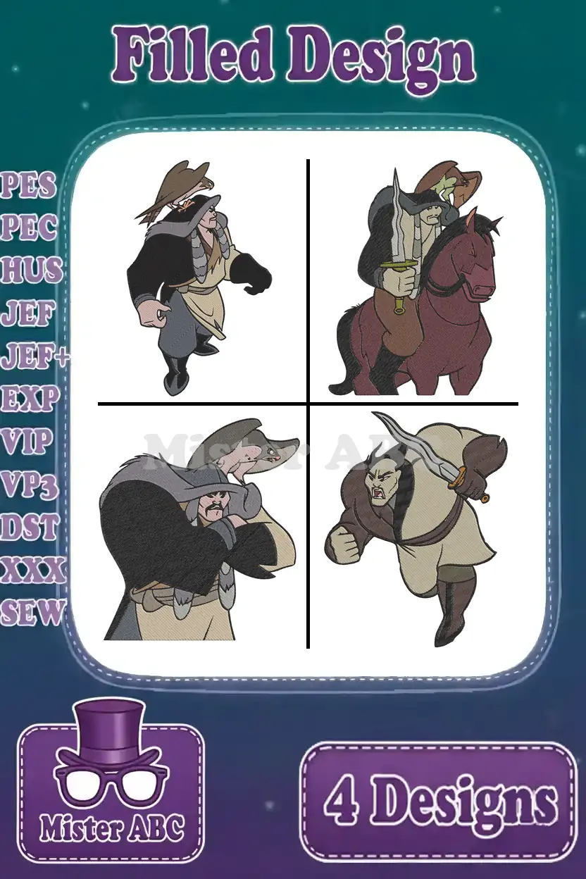 Mulan Villain Shan Yu Hun Leader Various Imposing Poses And Hayabusa Falcon – Filled Embroidery Design