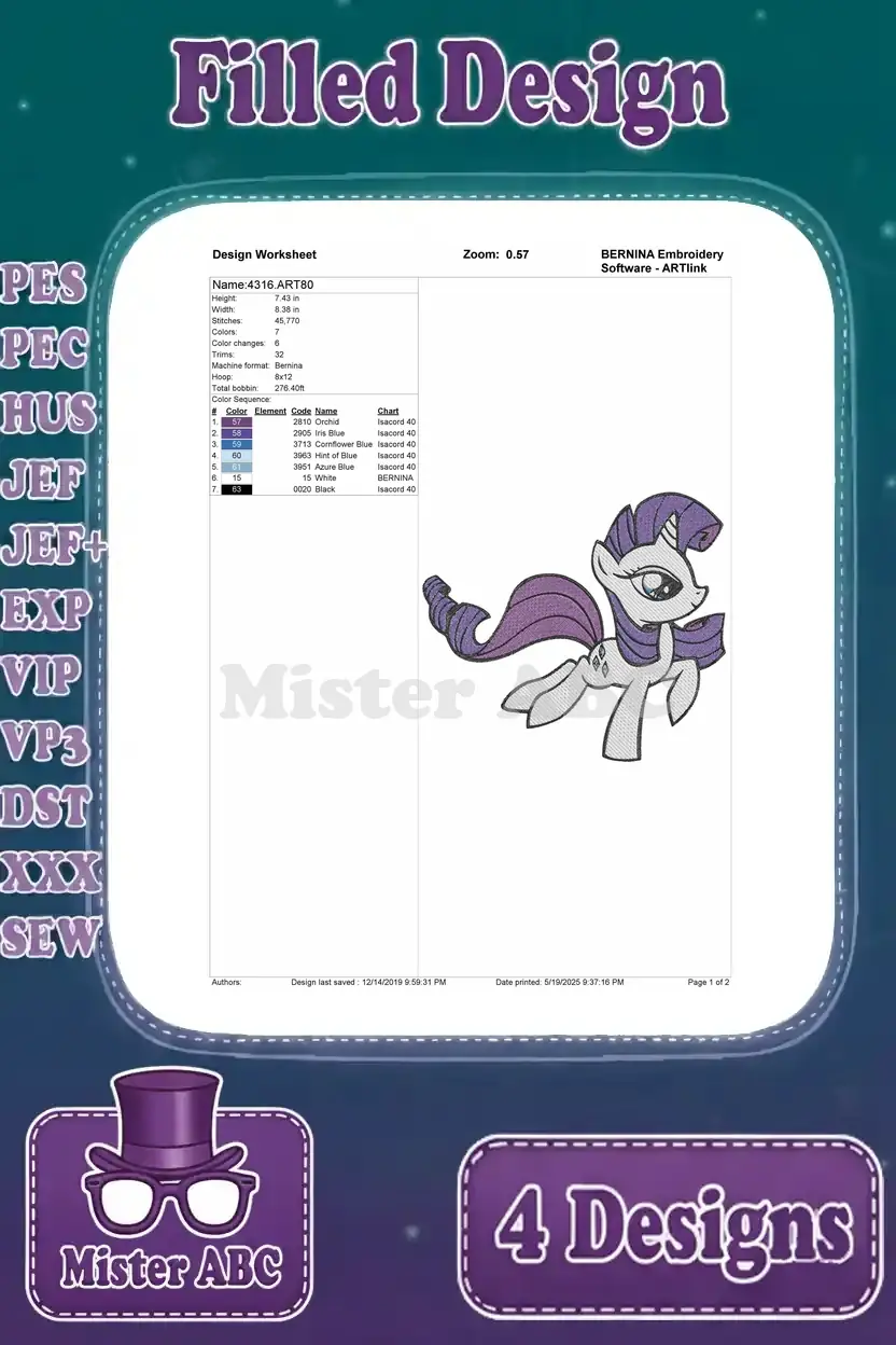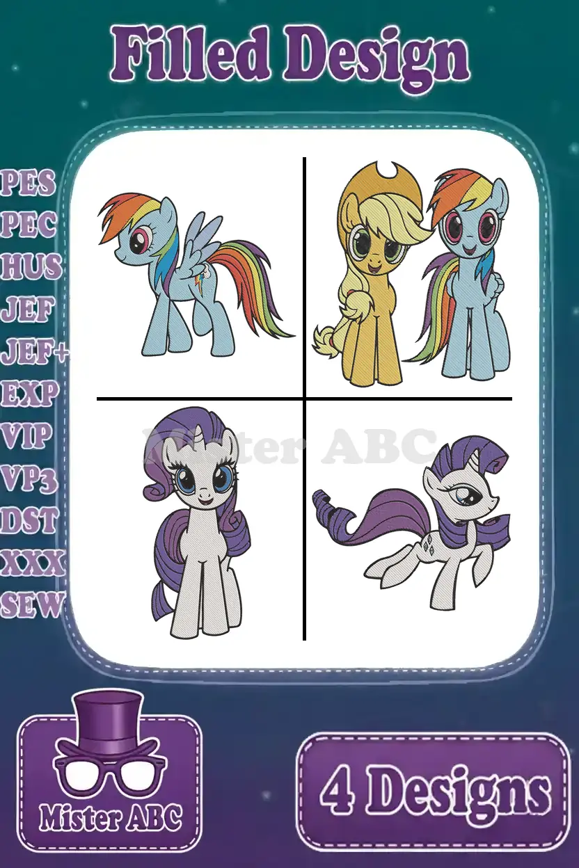 My Little Pony Friendship Is Magic – Rainbow Dash – Applejack – Rarity – Core Pony Friends – Filled Embroidery Design