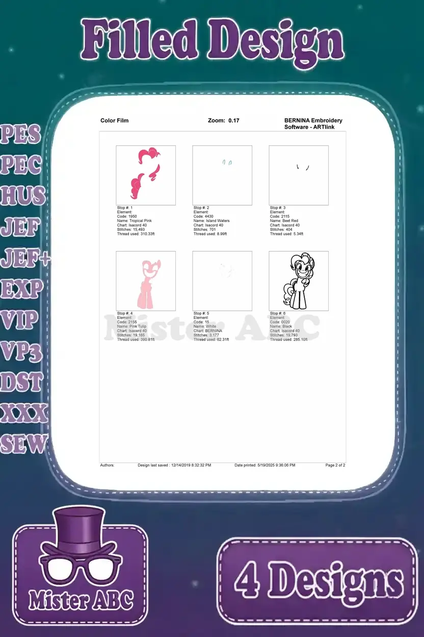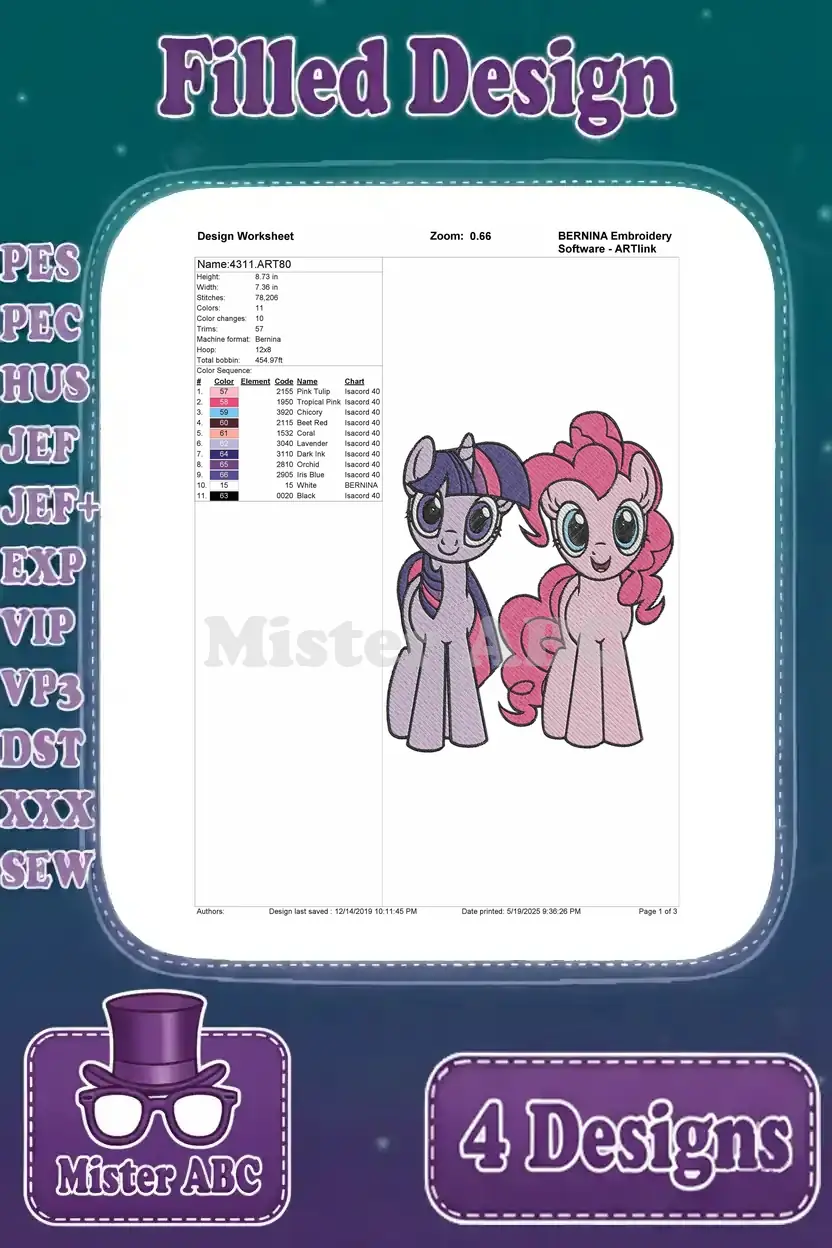 My Little Pony Friendship Is Magic – Pinkie Pie – Twilight Sparkle – Rainbow Dash – Mane Six Friends – Filled Embroidery Design