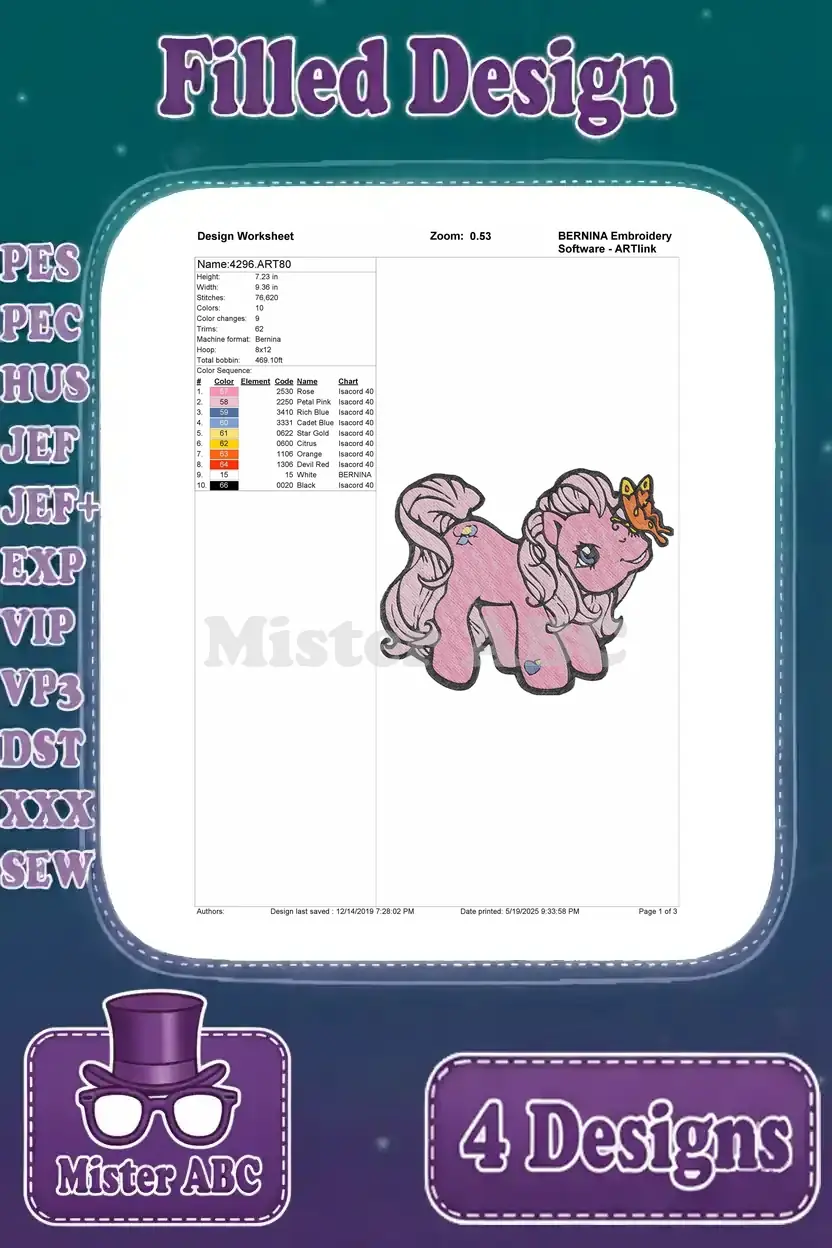 My Little Pony G1 G3 – Various Eh Ponies And Pegasus – Reading And Gift Giving – Retro Style – Filled Embroidery Design