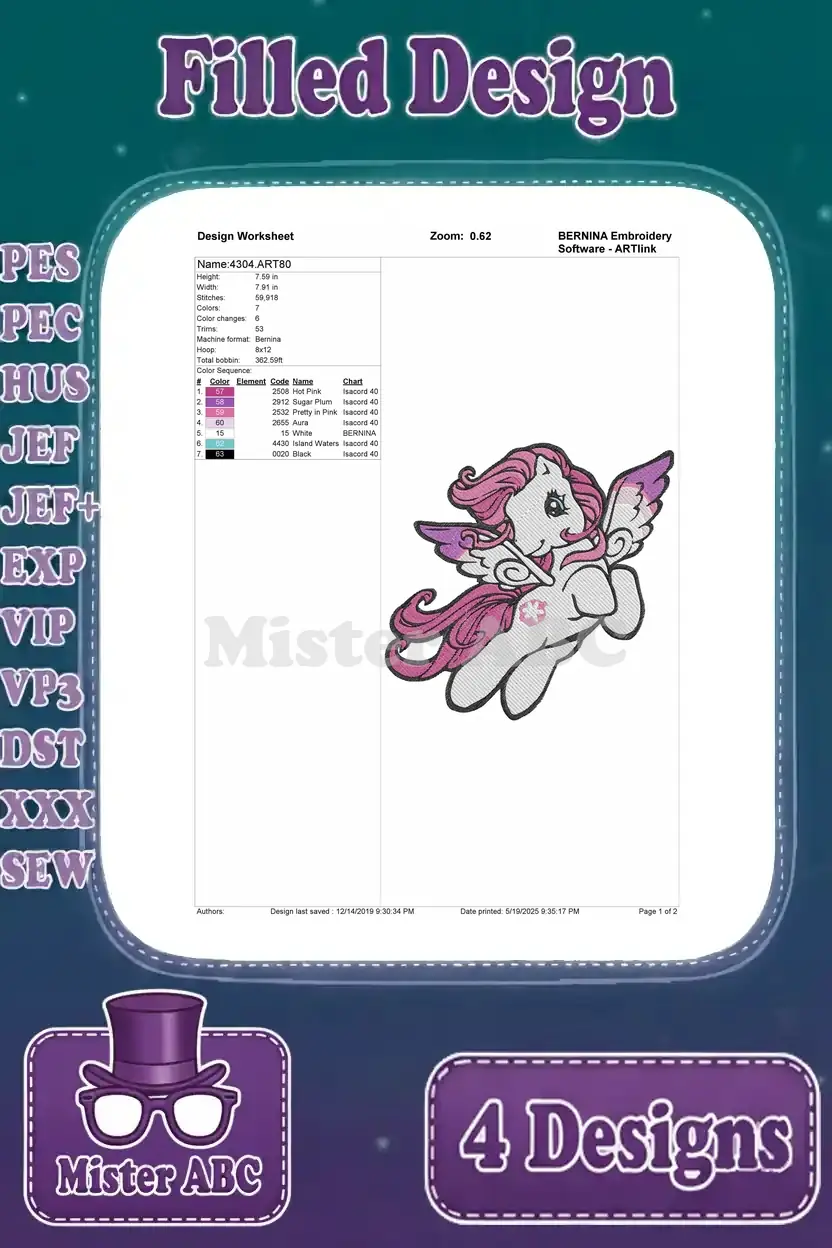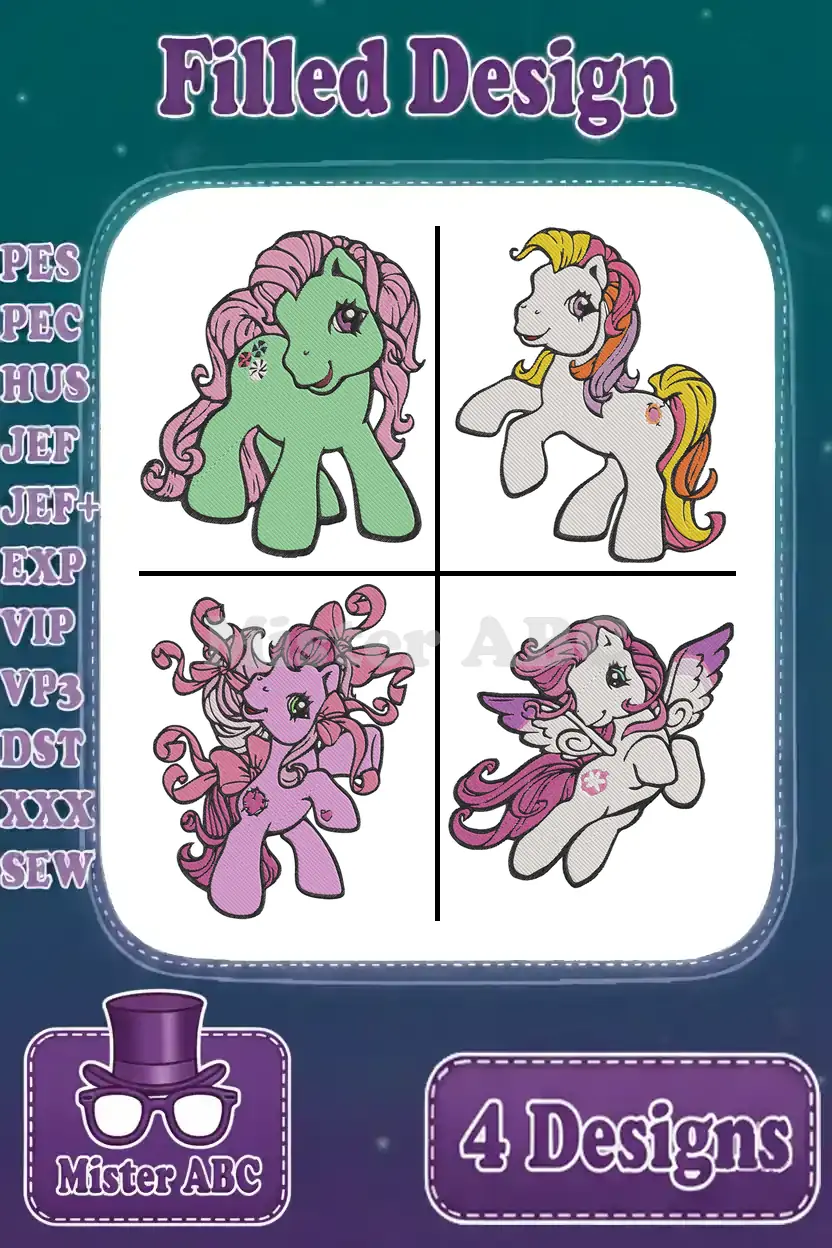 My Little Pony G1 G3 – Green Pink And Purple Pegasus Ponies – Winged Magical Friends Collection – Filled Embroidery Design