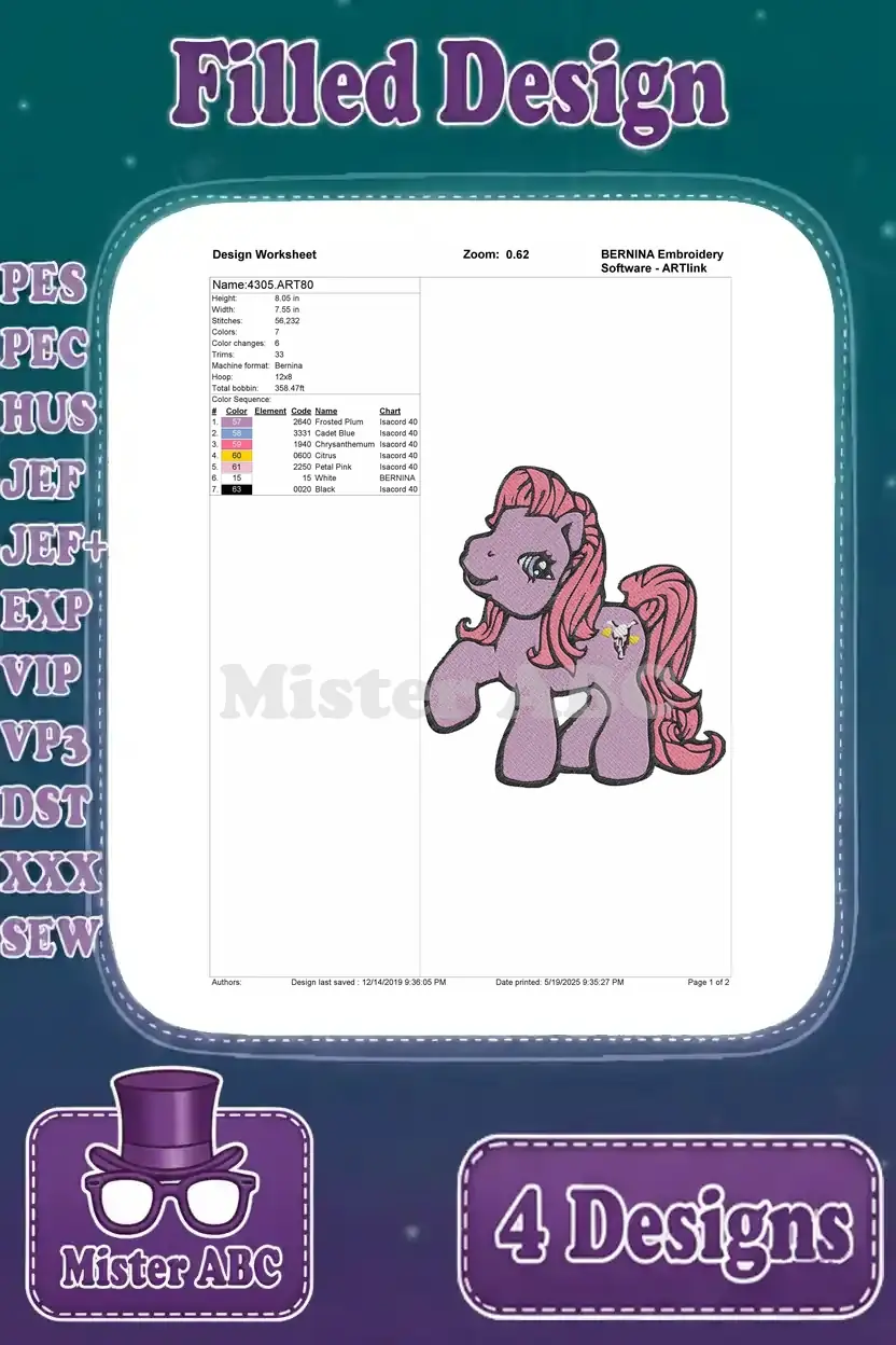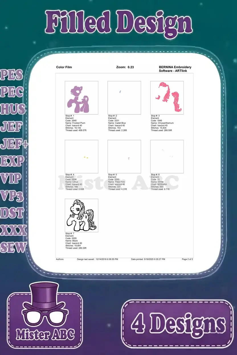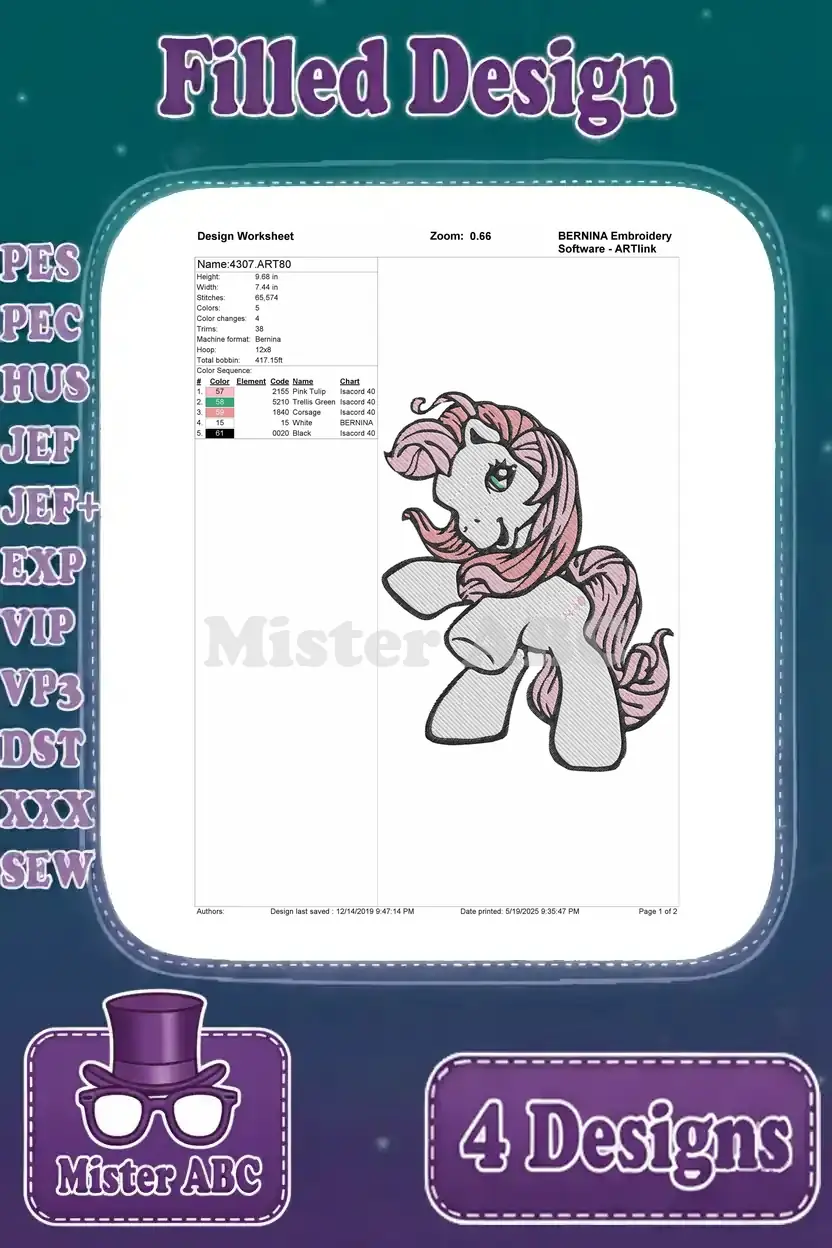 My Little Pony G1 G3 And G4 Pinkie Pie – Mixed Generation Ponies – Pegasus And Eh Pony Friends – Filled Embroidery Design