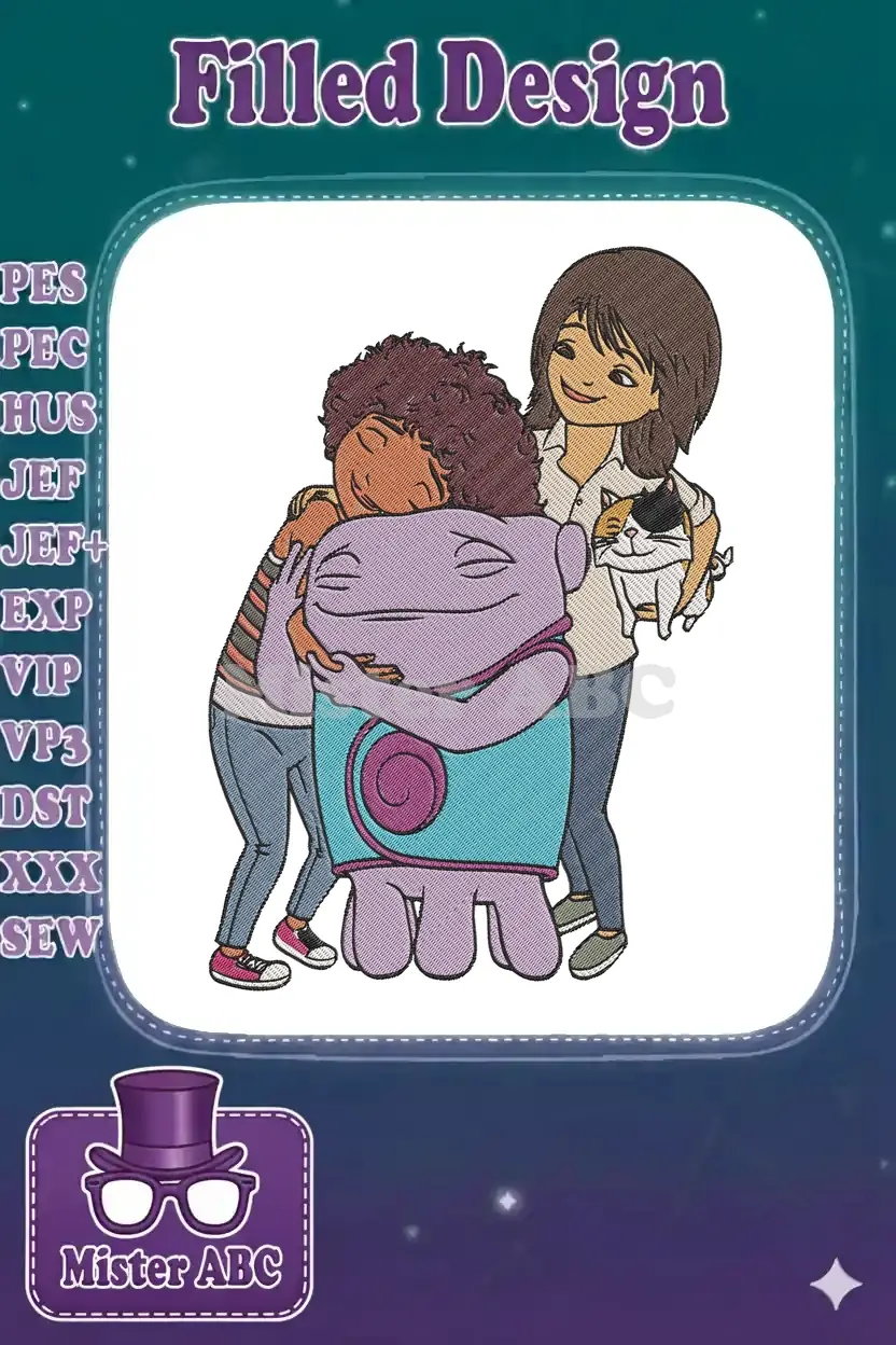 Oh alien, Tip girl, and cat happy friendship embroidery designs