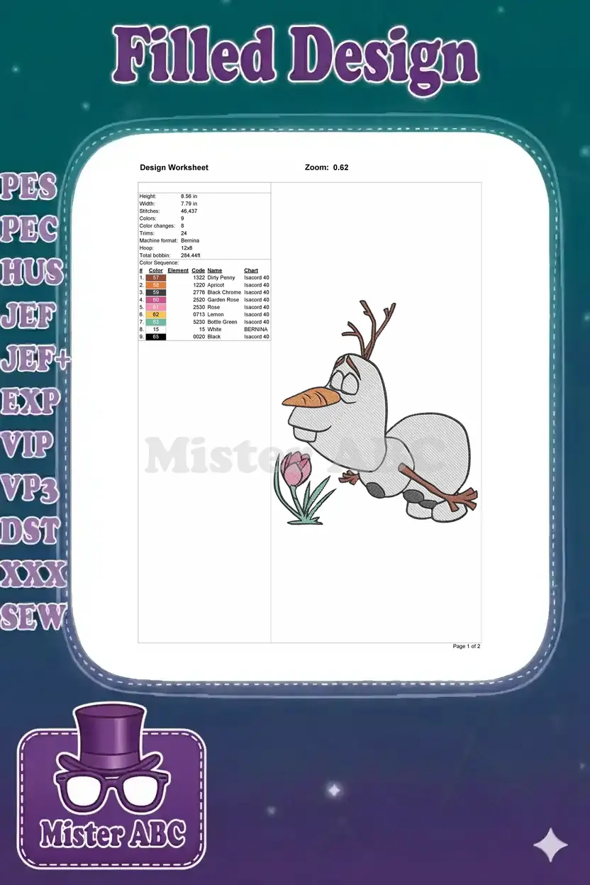 Olaf smelling pink tulip spring nature embroidery designs