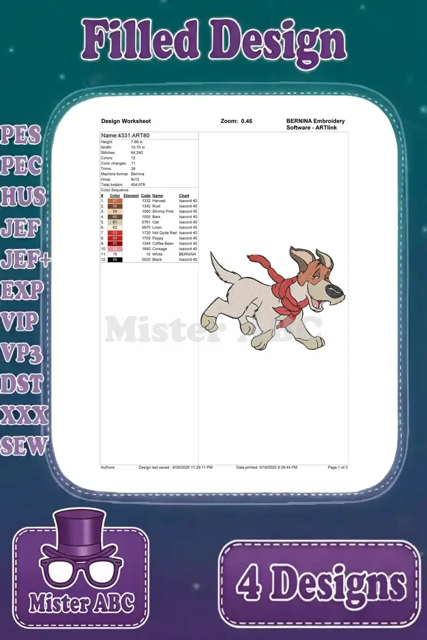 Oliver And Company – Dodger The ful Jack Russell Terrier – Cool Street Dog Poses – Disney Canine – Filled Embroidery Design