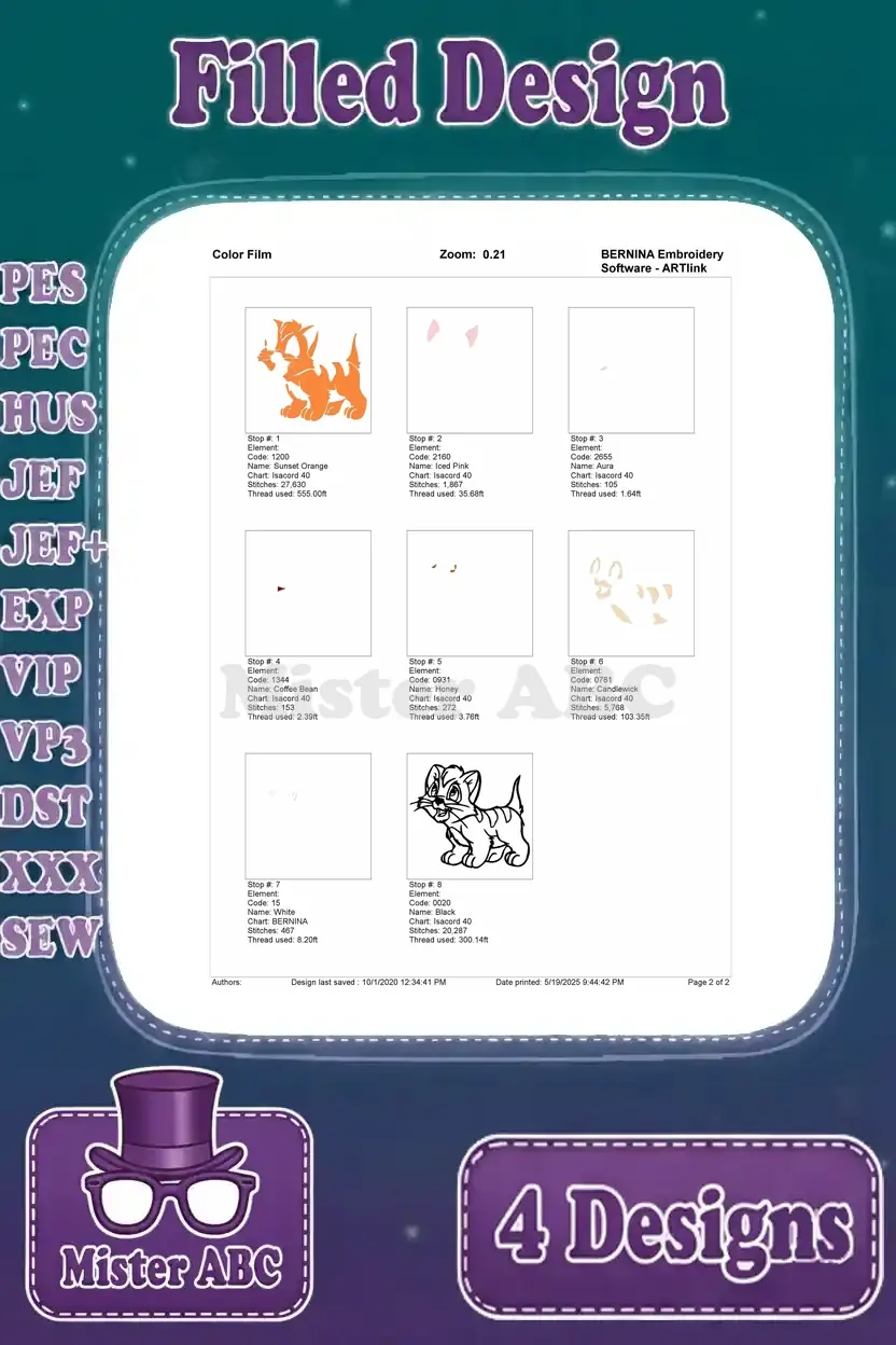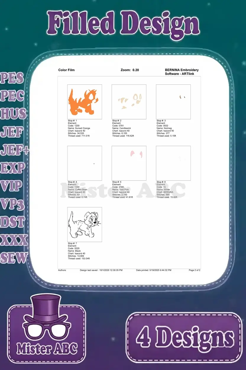 Oliver And Company – Oliver The Cute Orange Tabby Kitten – Various Sweet Poses – Disney Feline – Filled Embroidery Design