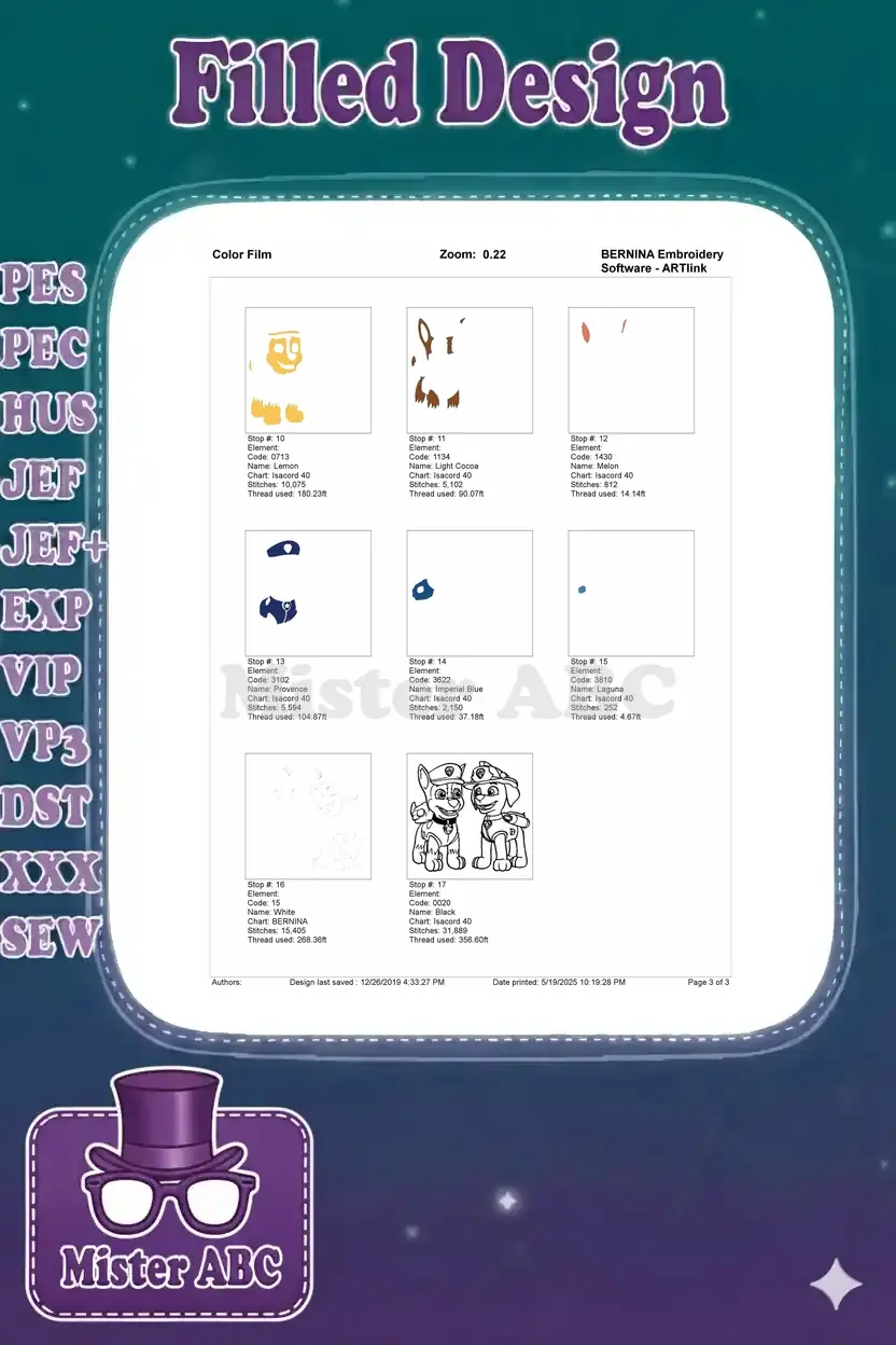 Paw Patrol Chase and Marshall Police Fire Dog Embroidery Designs