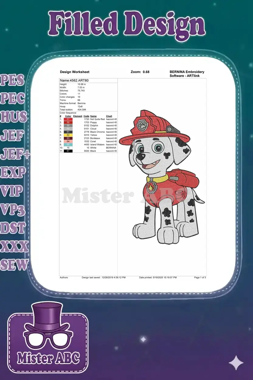 Paw Patrol Marshall firefighter dalmatian puppy embroidery designs