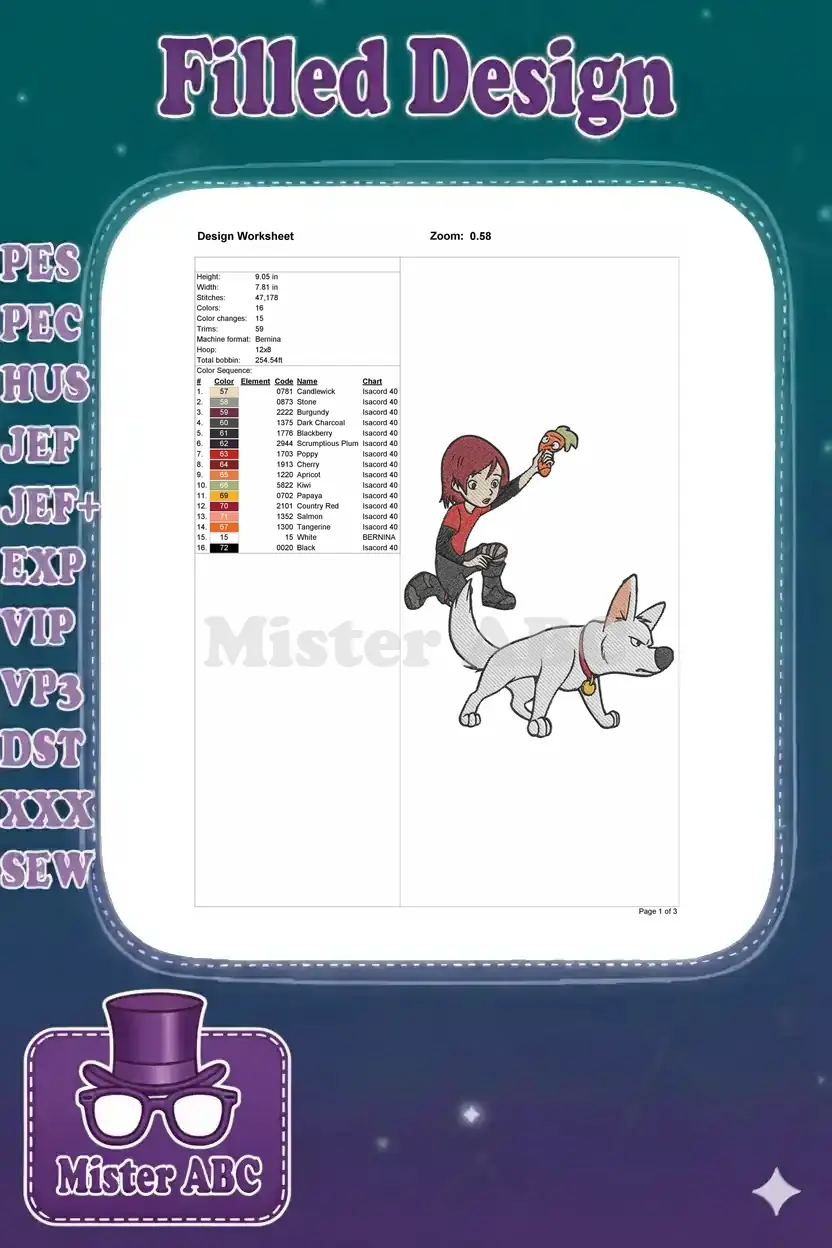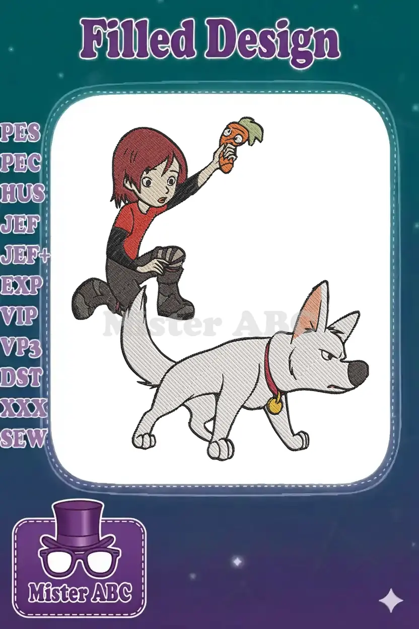 Penny and Bolt white dog cartoon character embroidery designs