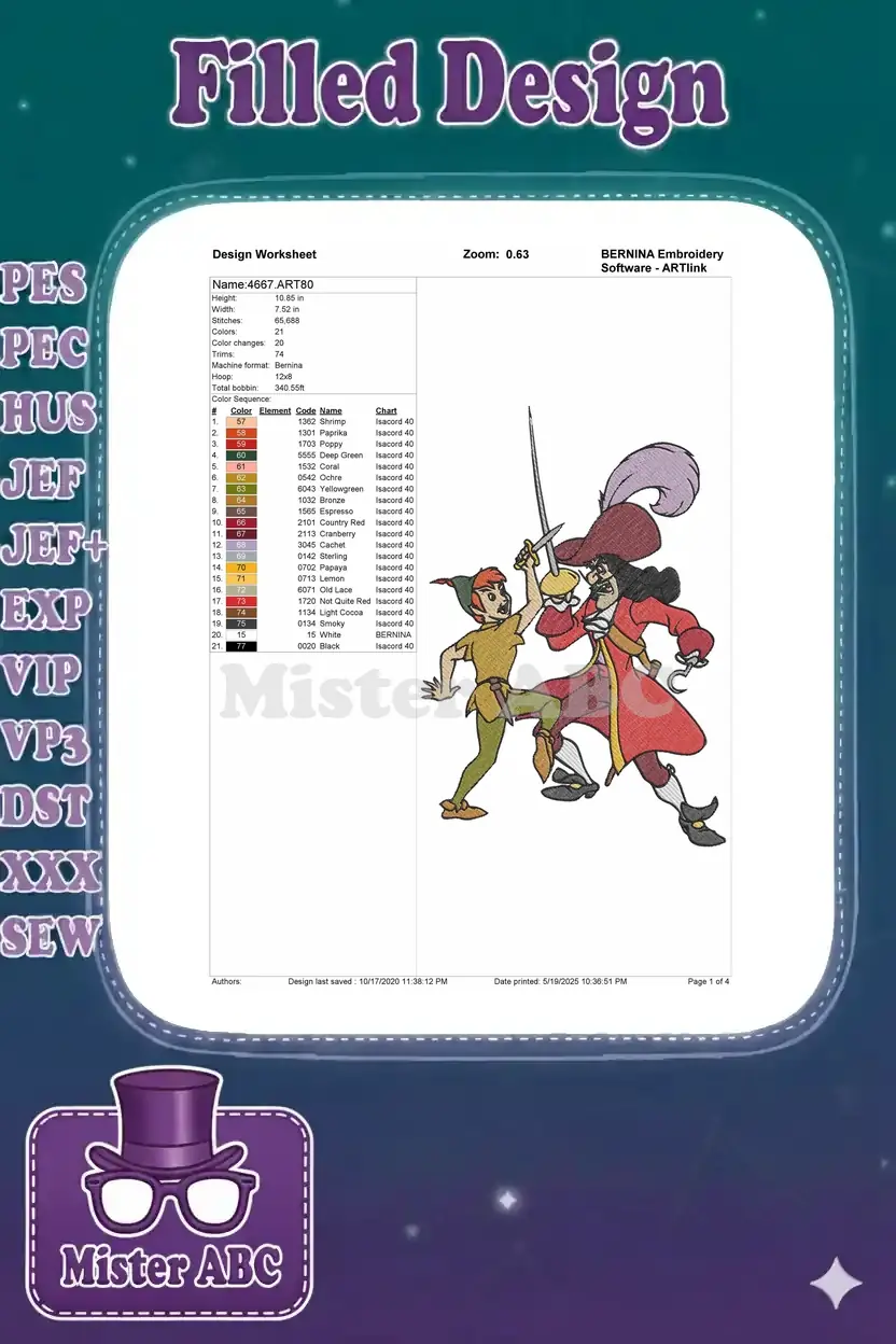 Peter Pan and Captain Hook Sword Fight Adventure Embroidery Designs