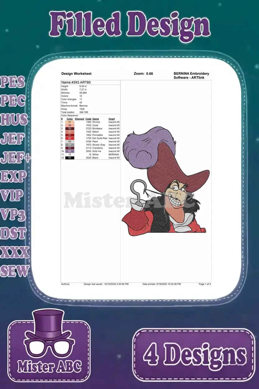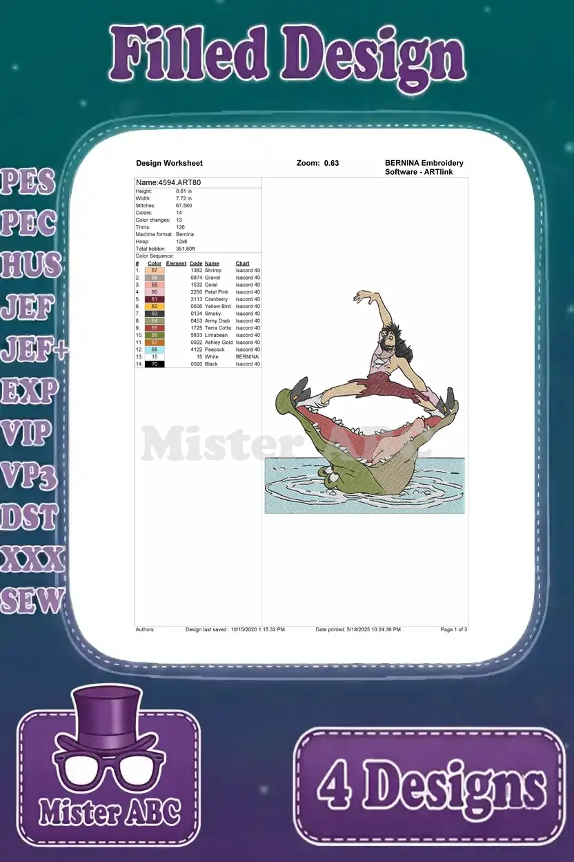 Peter Pan Captain Hook Portraits And Chased By Tick Tock Crocodile Scenes – Filled Embroidery Design