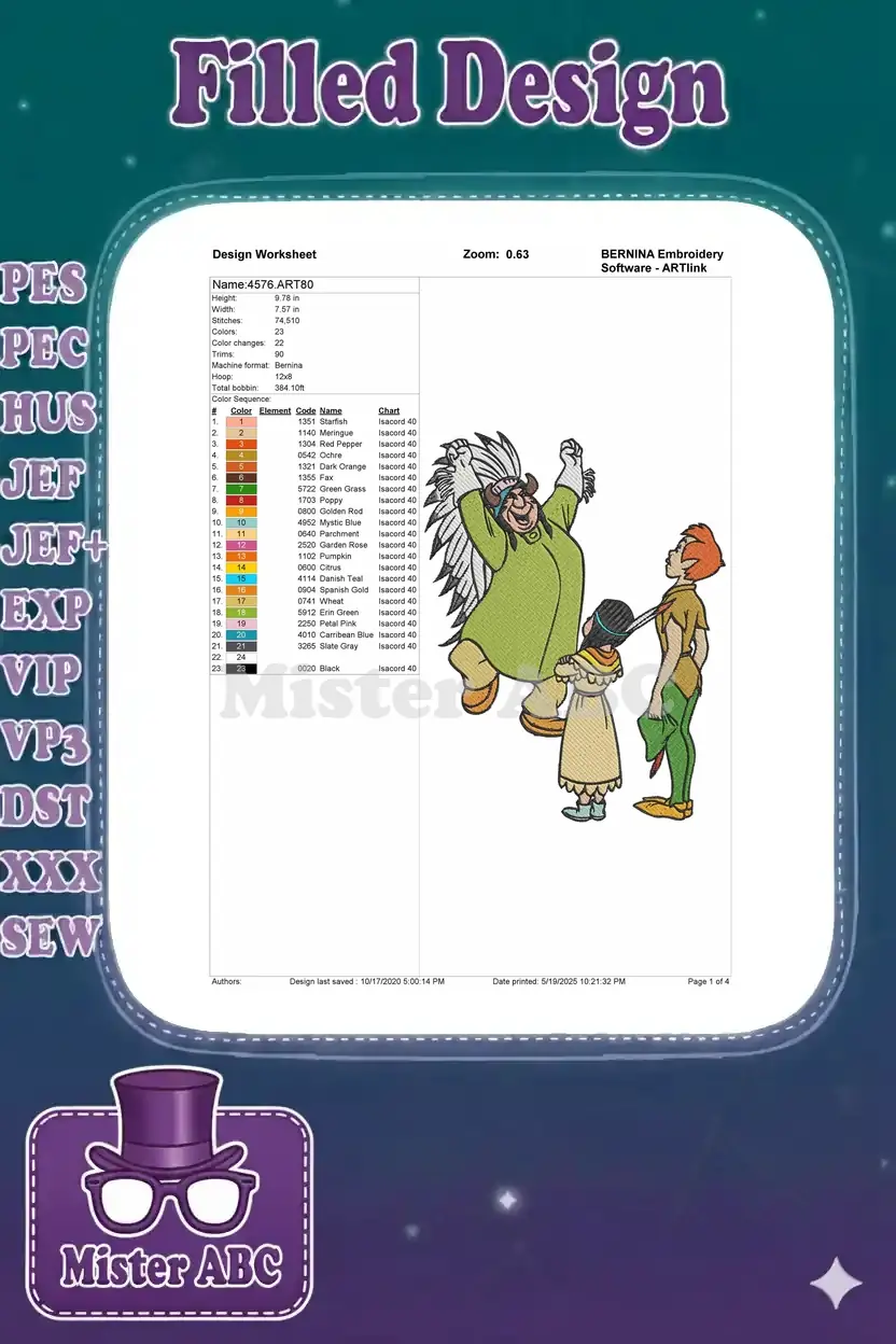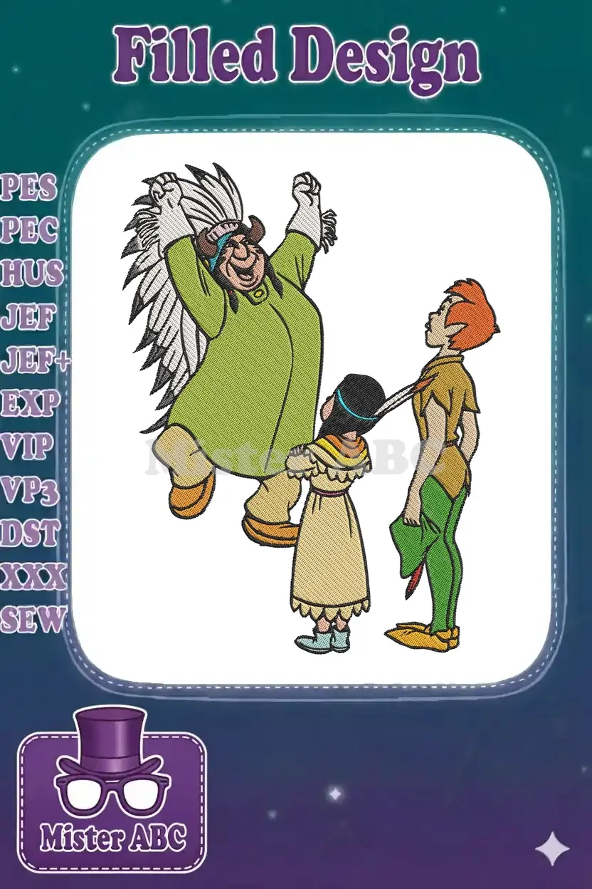 Peter Pan Chief Tiger Lily Joyful Native American Embroidery Designs
