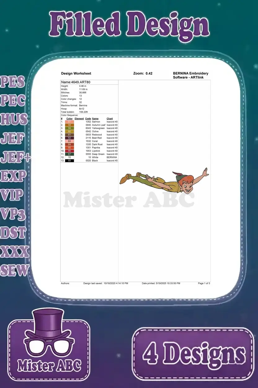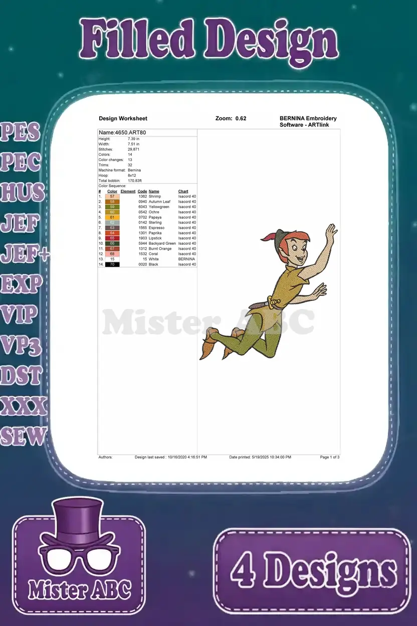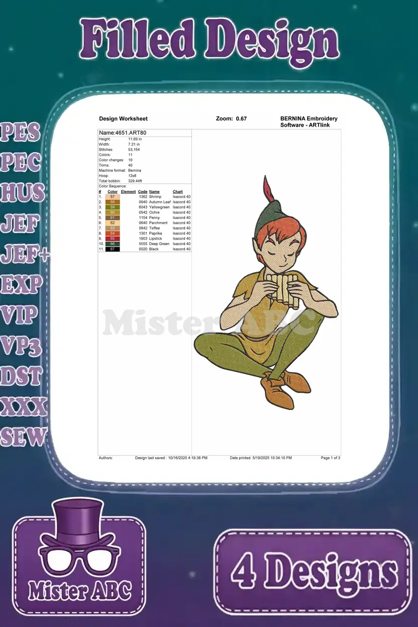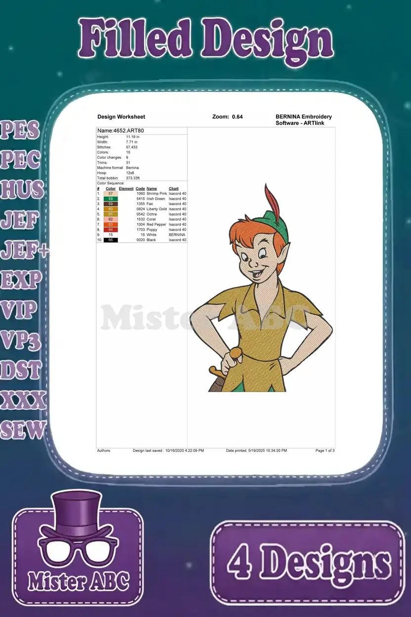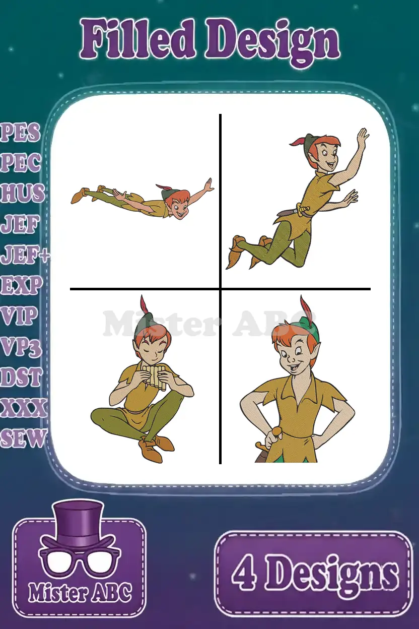 Peter Pan The Leader Of The Lost Boys – Assorted Standing Confident And Adventure Poses – Neverland Hero Figure – Filled Embroidery Design