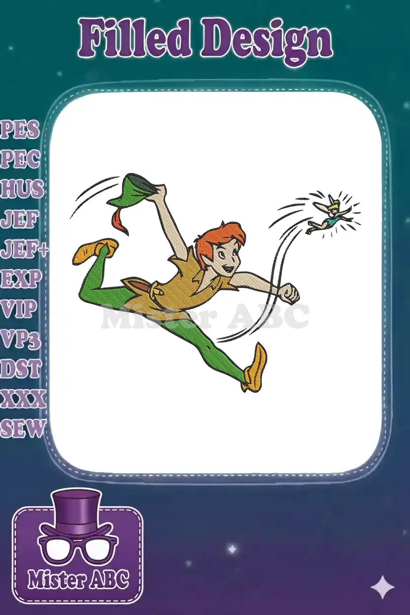 Peter Pan and Tinker Bell flying adventure embroidery designs