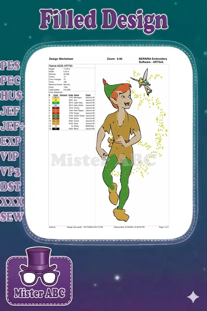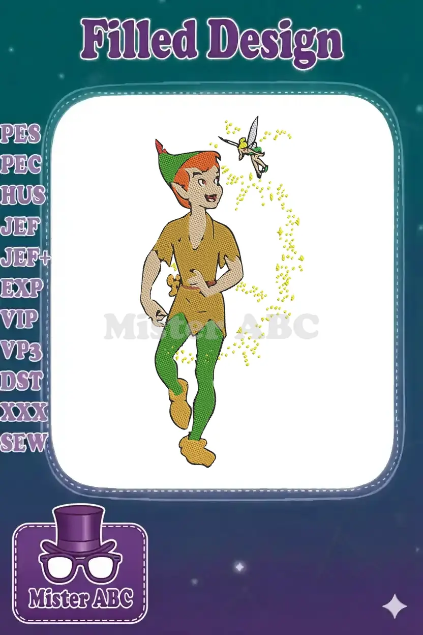 Bring the magic of Neverland to life with this enchanting Peter Pan and Tinkerbell embroidery design. Perfect for fans!