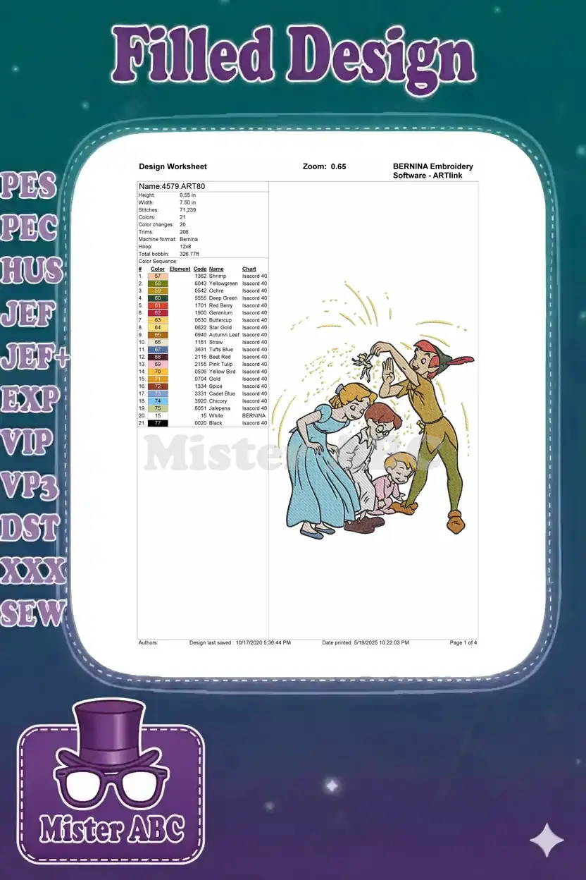 Peter Pan Tinkerbell Wendy Darling magical pixie dust embroidery designs