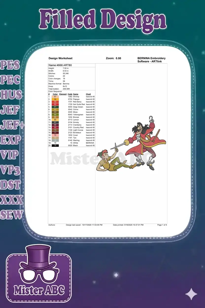 Peter Pan versus Captain Hook fantasy adventure embroidery designs