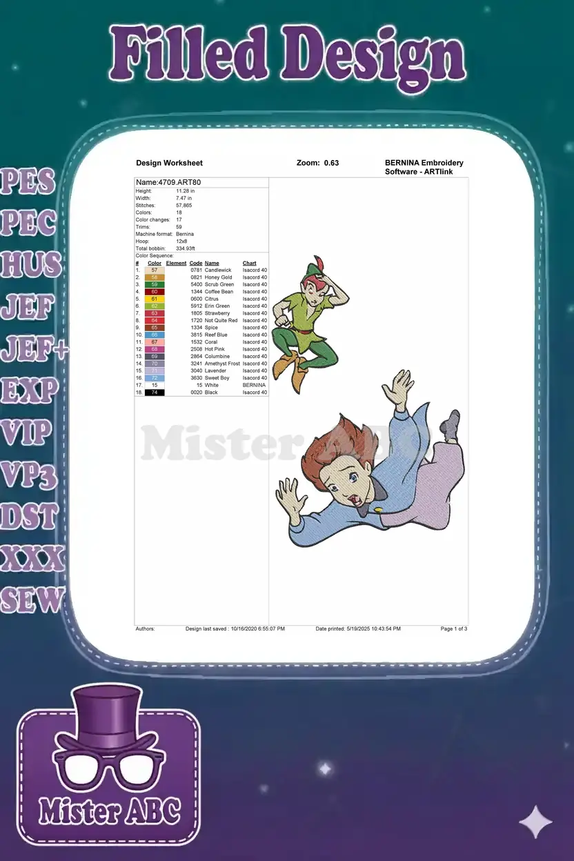 Peter Pan and Wendy Darling Falling Adventure Embroidery Designs