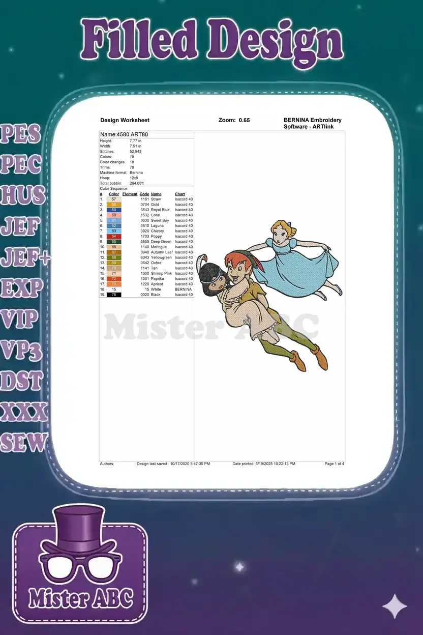 Peter Pan Wendy and Tiger Lily Flying Adventure Embroidery Designs
