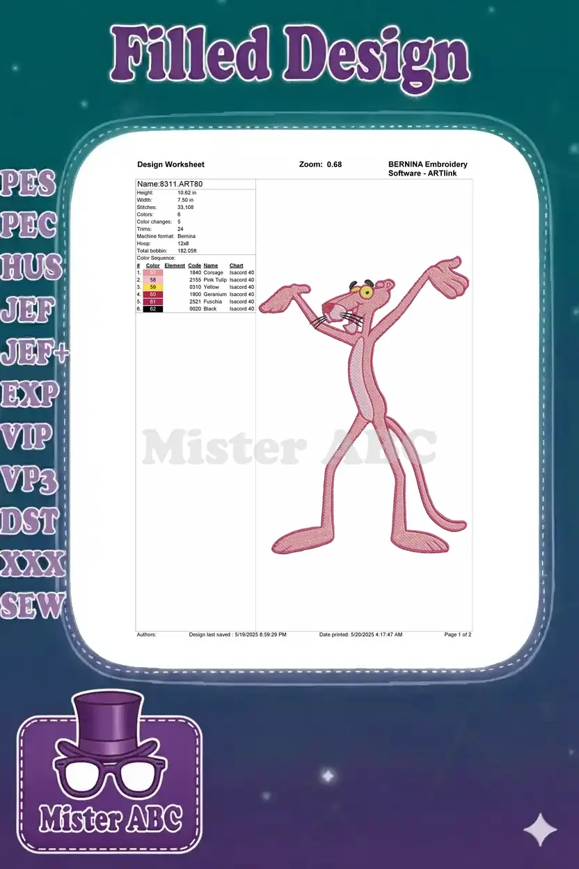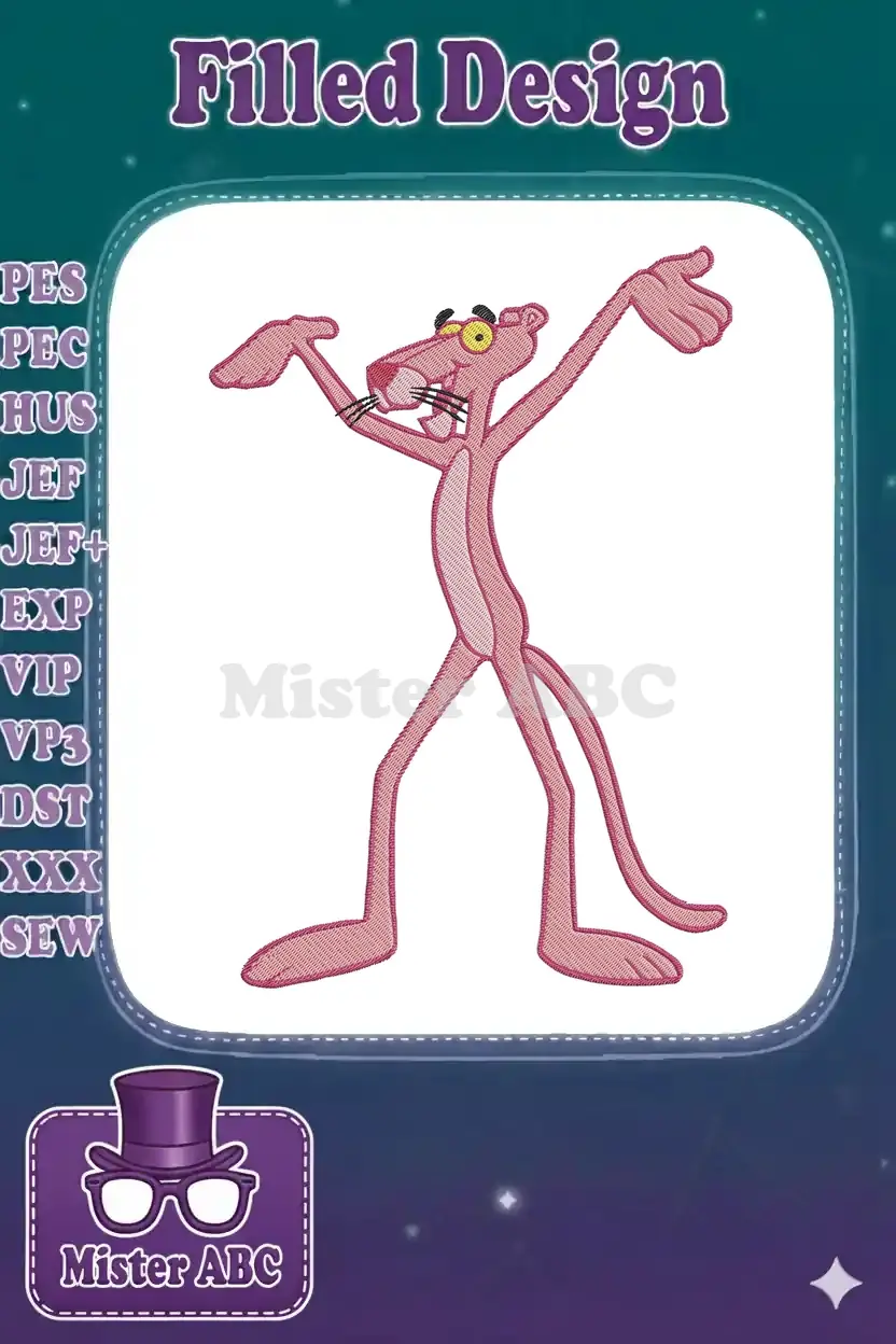 Pink Panther Classic Cartoon Character Waving Arms Embroidery Designs