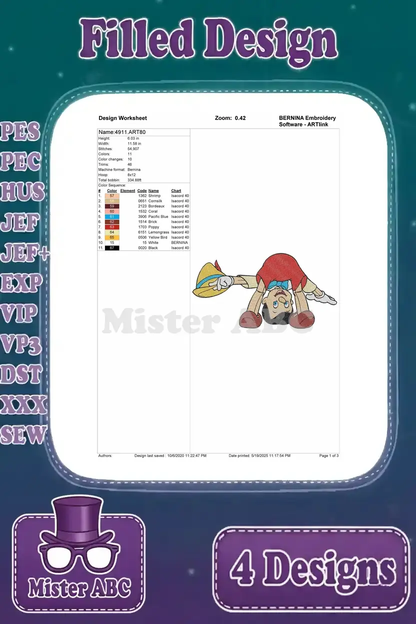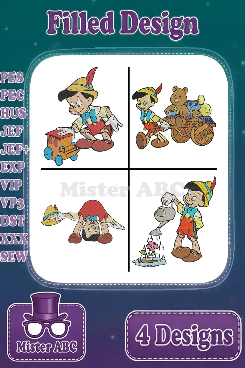 Pinocchio With Toy Train Teddy Bear Handstand And Smoking On Pleasure Island – Filled Embroidery Design