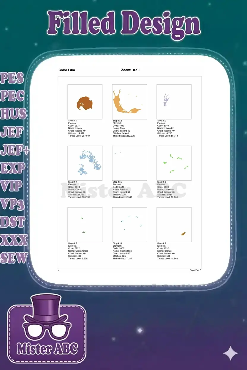 | Stitches | Colors | Thread Changes |