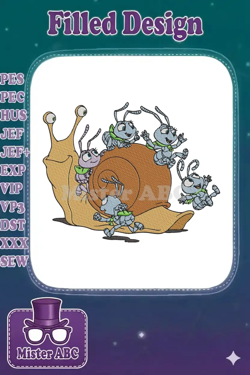 Playful Cartoon Snail with Happy Ant Friends Embroidery Designs