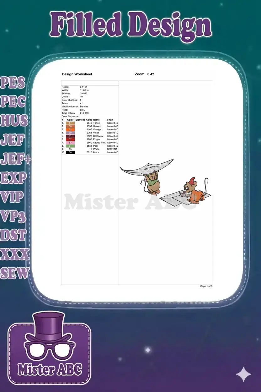 Playful Cinderella Jaq and Gus Mice with Paper Embroidery Designs