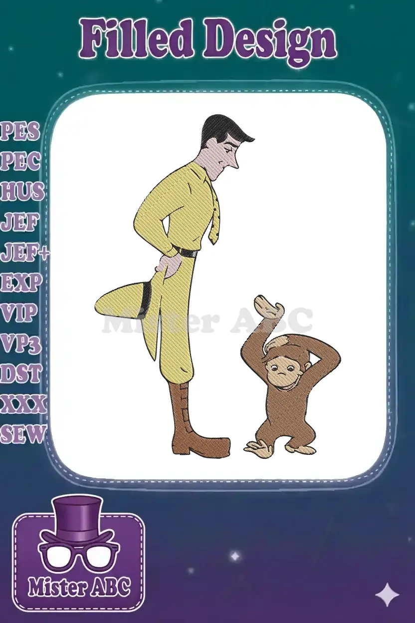 Playful Curious George and Man in Yellow Hat animated embroidery designs