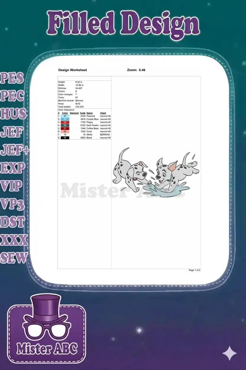 Playful Dalmatian puppies splashing in water fun embroidery designs