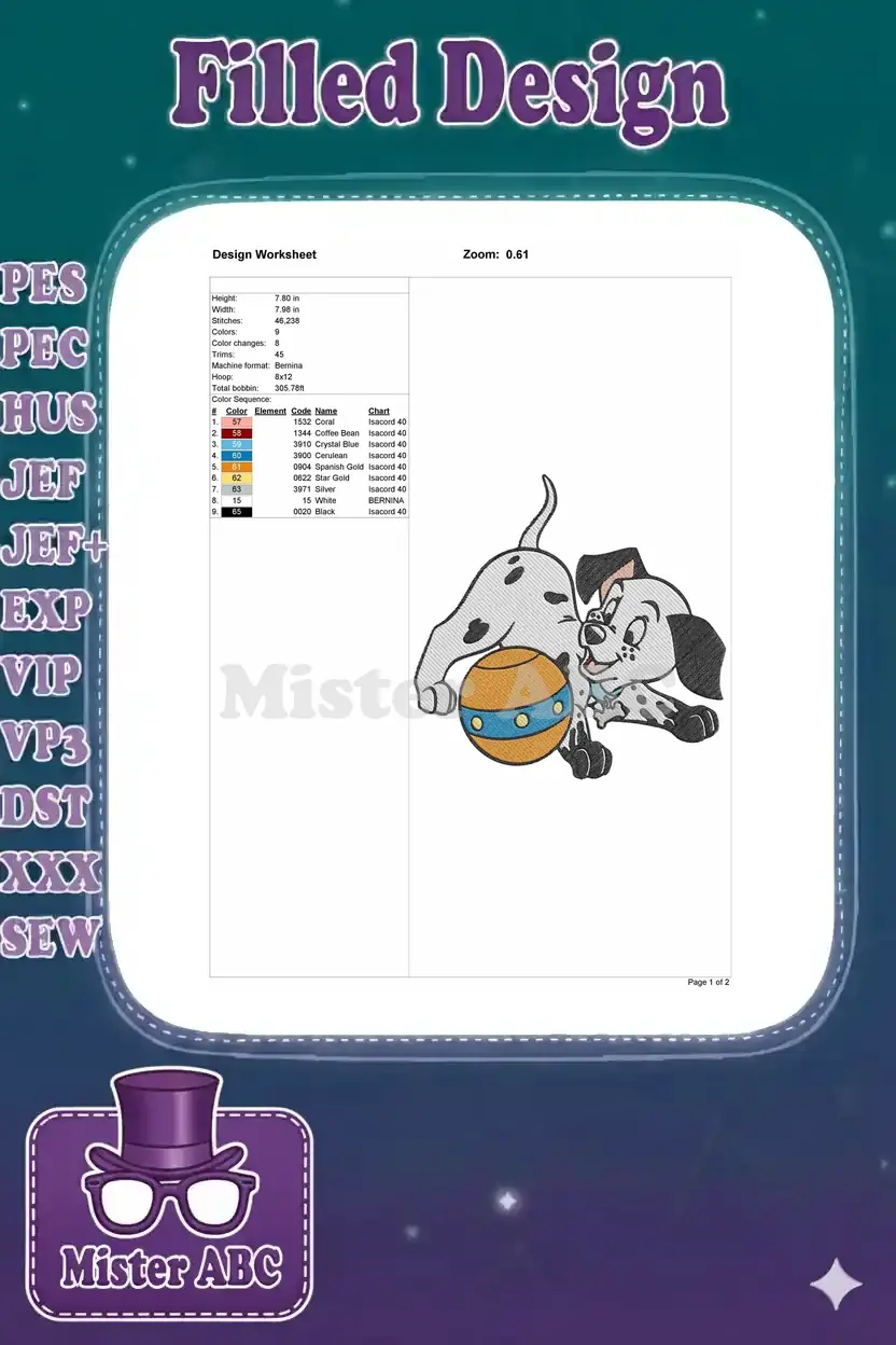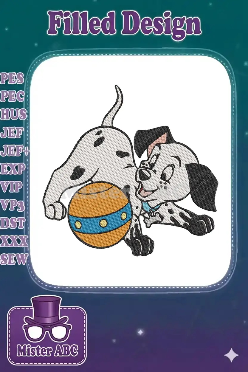 Playful Dalmatian Puppy with Orange and Blue Ball Embroidery Designs