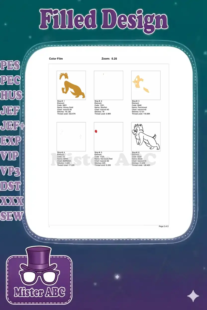 Playful Disney Dale Chipmunk running embroidery designs for kids