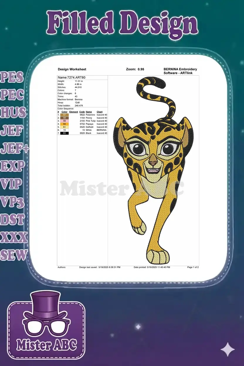 Playful Fuli the Cheetah Pouncing Animated Embroidery Designs for Kids