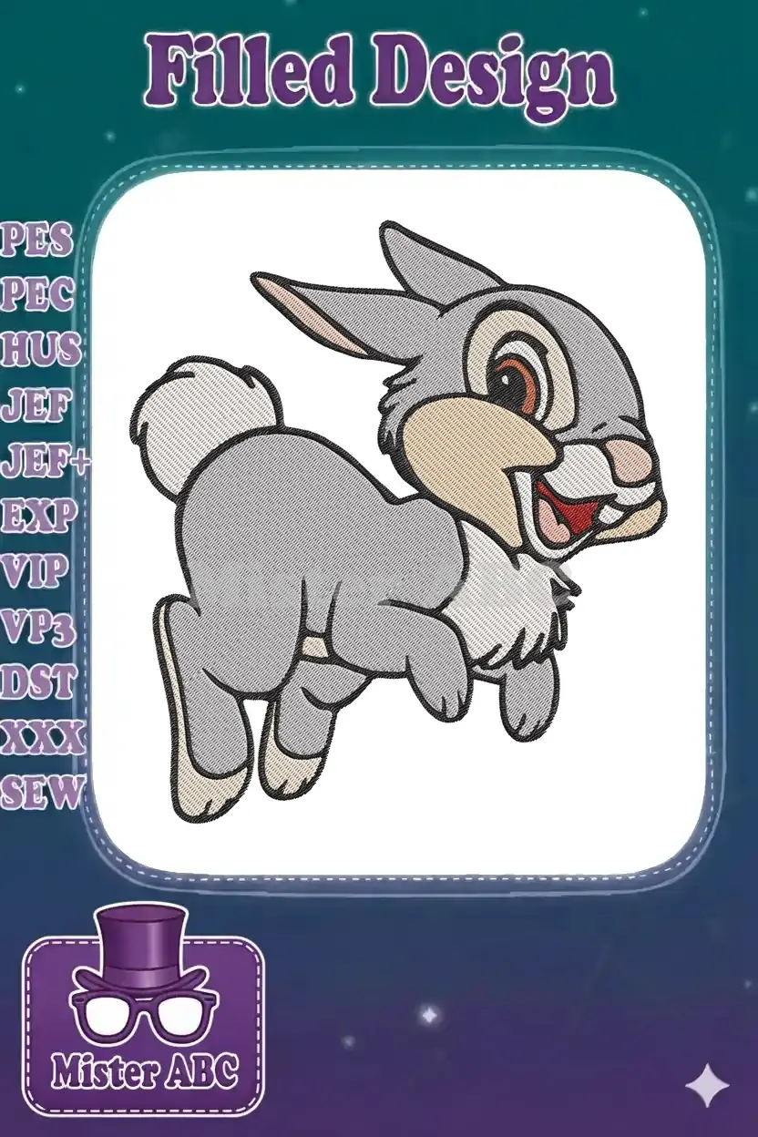 Playful gray cartoon rabbit jumping embroidery designs