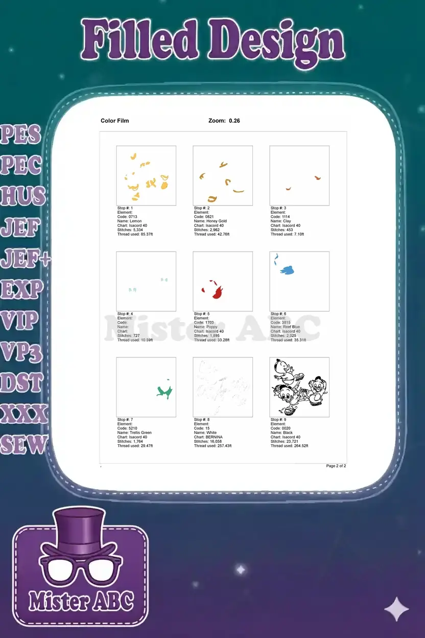 | Stitches | Colors | Thread Changes |