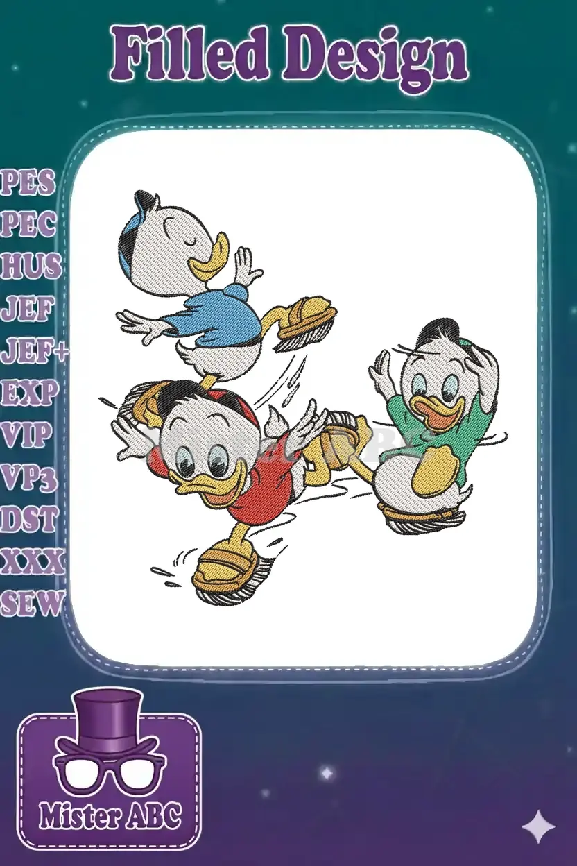 Playful Huey Dewey Louie Ducklings Tumbling Embroidery Designs